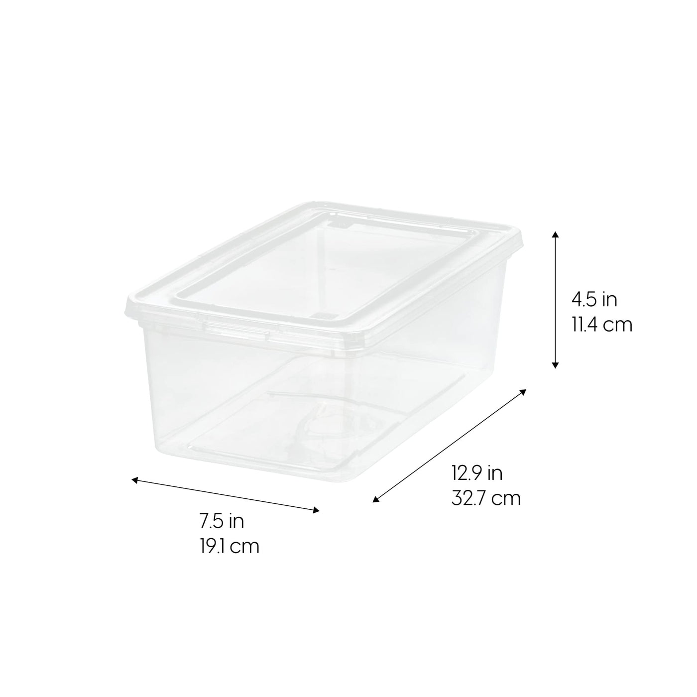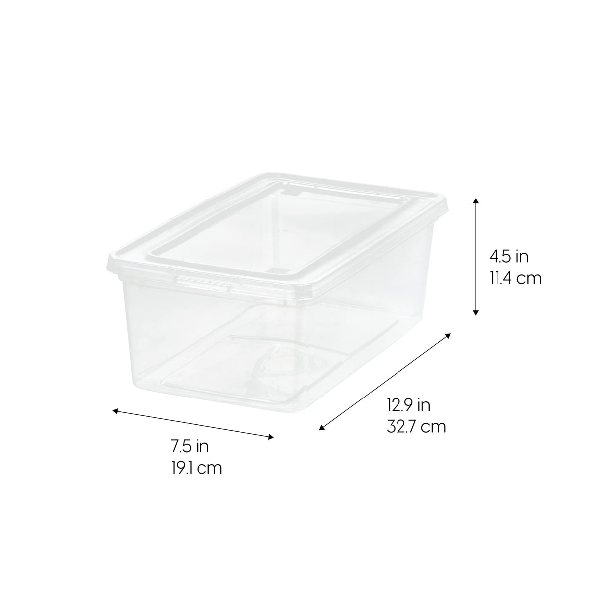 - Q: What are the dimensions of the IRIS USA 5.9 Qt Plastic Stackable Storage Container? A: The dimensions of the IRIS USA 5.9 Qt Plastic Stackable Storage Container are 12.88 inches long, 7.50 inches wide, and 4.50 inches high.