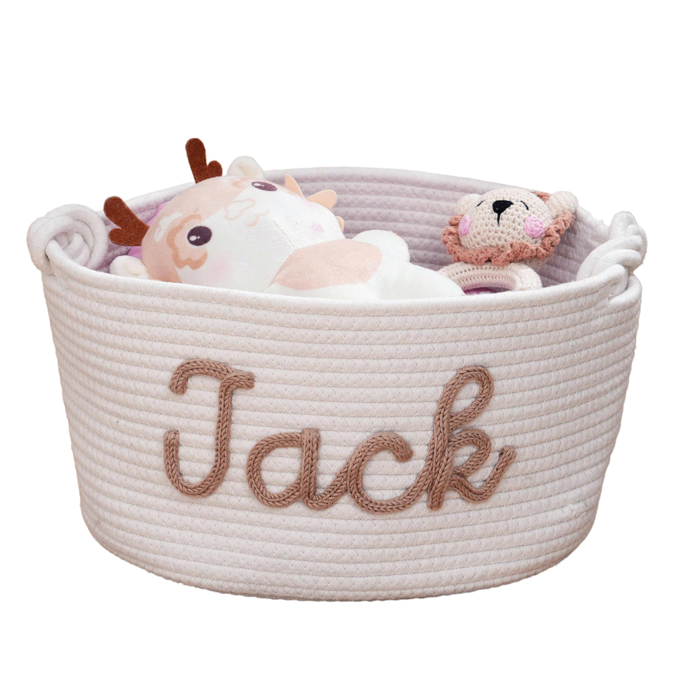 JUPPE Personalized Baby Shower Basket Gift, Baptism Gift Toys and Storage Organizer Custom Baby Boy Girl Name Cotton Rope Basket