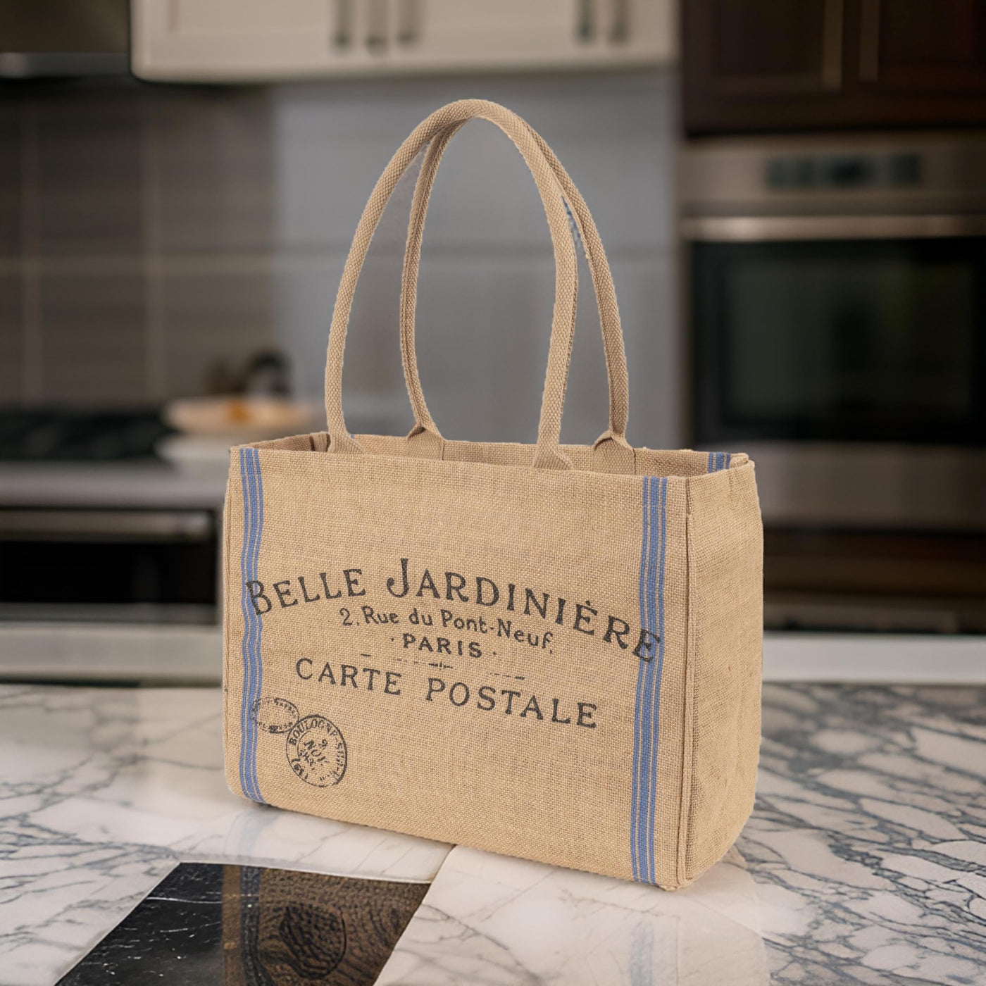 Kaf Home Jute Market Tote Bag, Belle Jardiniere Print, Durable Handle, Reinforced Bottom And Interior Zipper Pocket