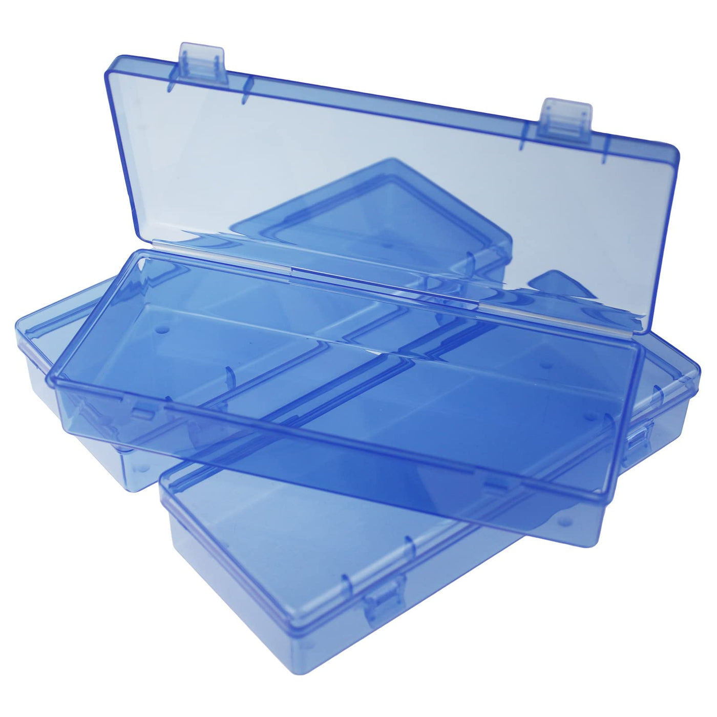 Ljy 10 Pieces Rectangular Empty Mini Clear Plastic Organizer Storage Box Containers With Hinged Lids (6.1 X 2.6 X 1.2 Inch, Blue