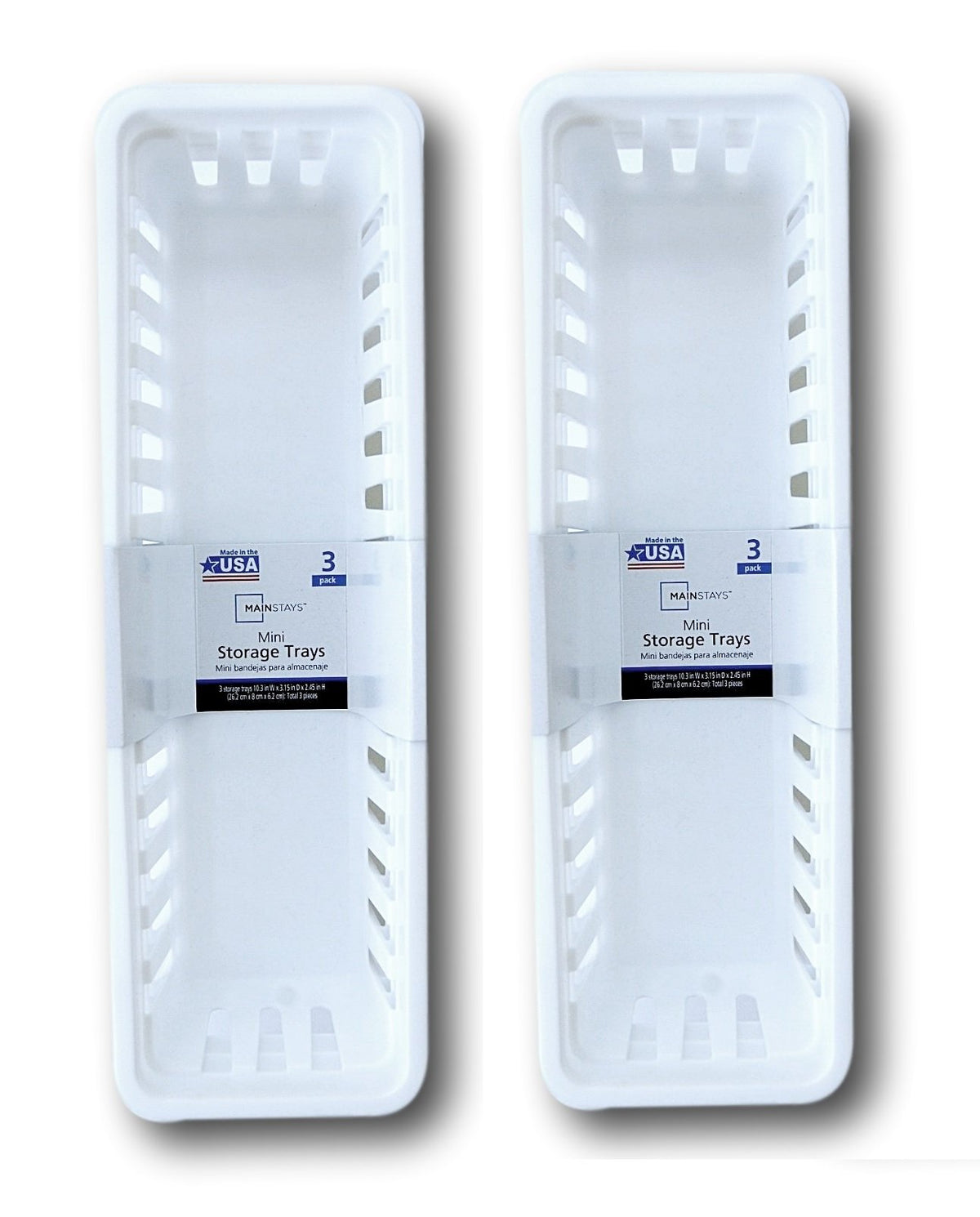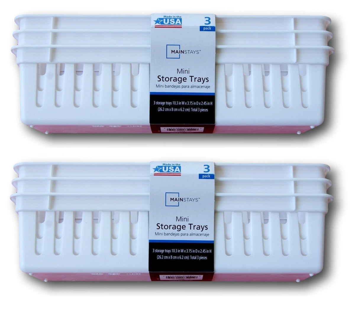 Mainstays Slim Plastic Storage Trays Baskets In White- Set Of 6