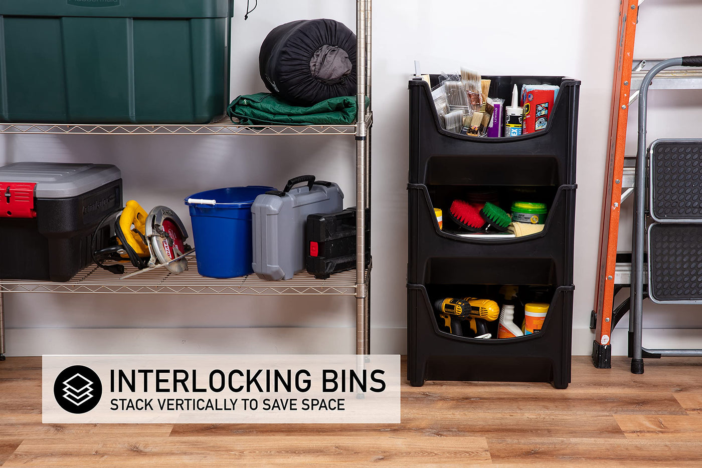 • Q: How do these bins help with organization? A: The bins have a wide front opening for easy visibility and access, making it simple to find and organize items.