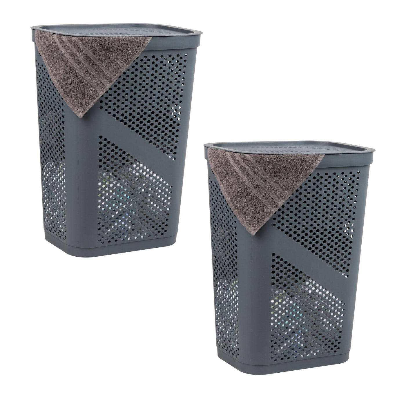 Mind Reader 60L Slim Laundry Hamper, Clothes Basket, Lid, Ventilated, Plastic, 17.25''L X 13.75''W X 23.5''H, Set Of 2, Gray