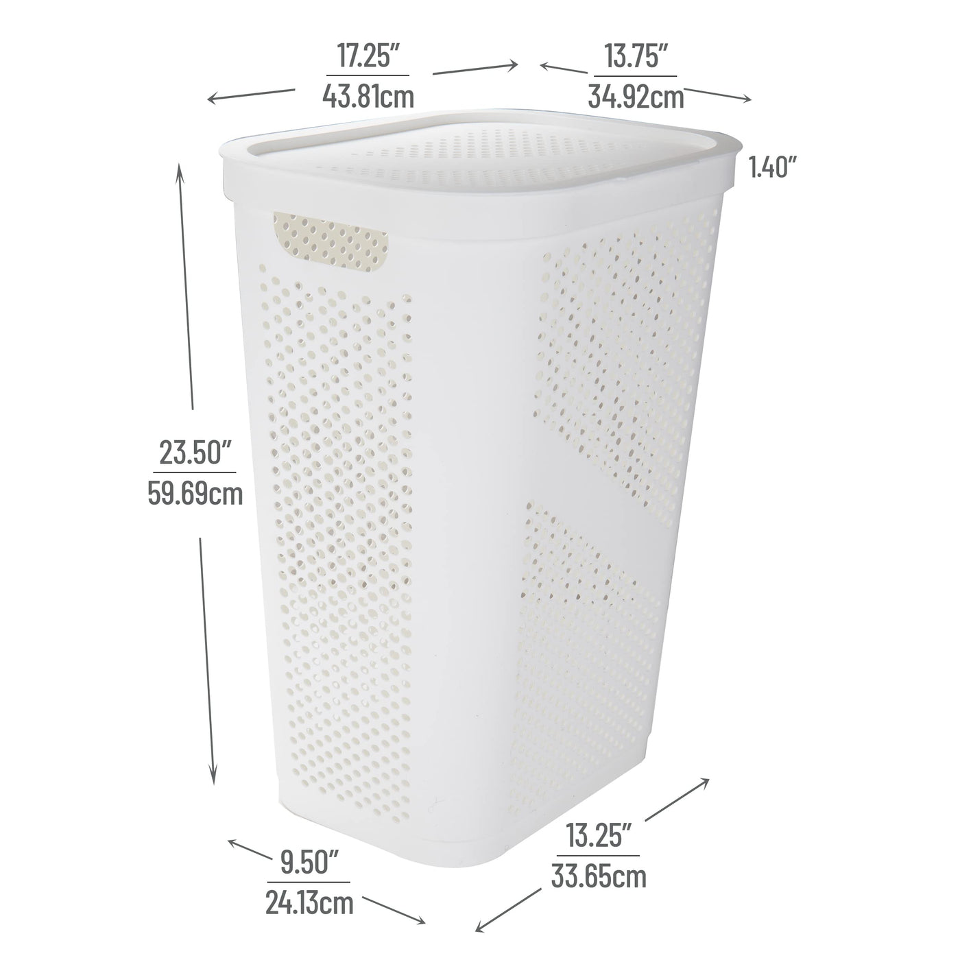 - Q: What are the dimensions of the Mind Reader Slim Laundry Hamper? A: The dimensions of the Mind Reader Slim Laundry Hamper are 17.25 inches long, 13.75 inches wide, and 23.5 inches high.