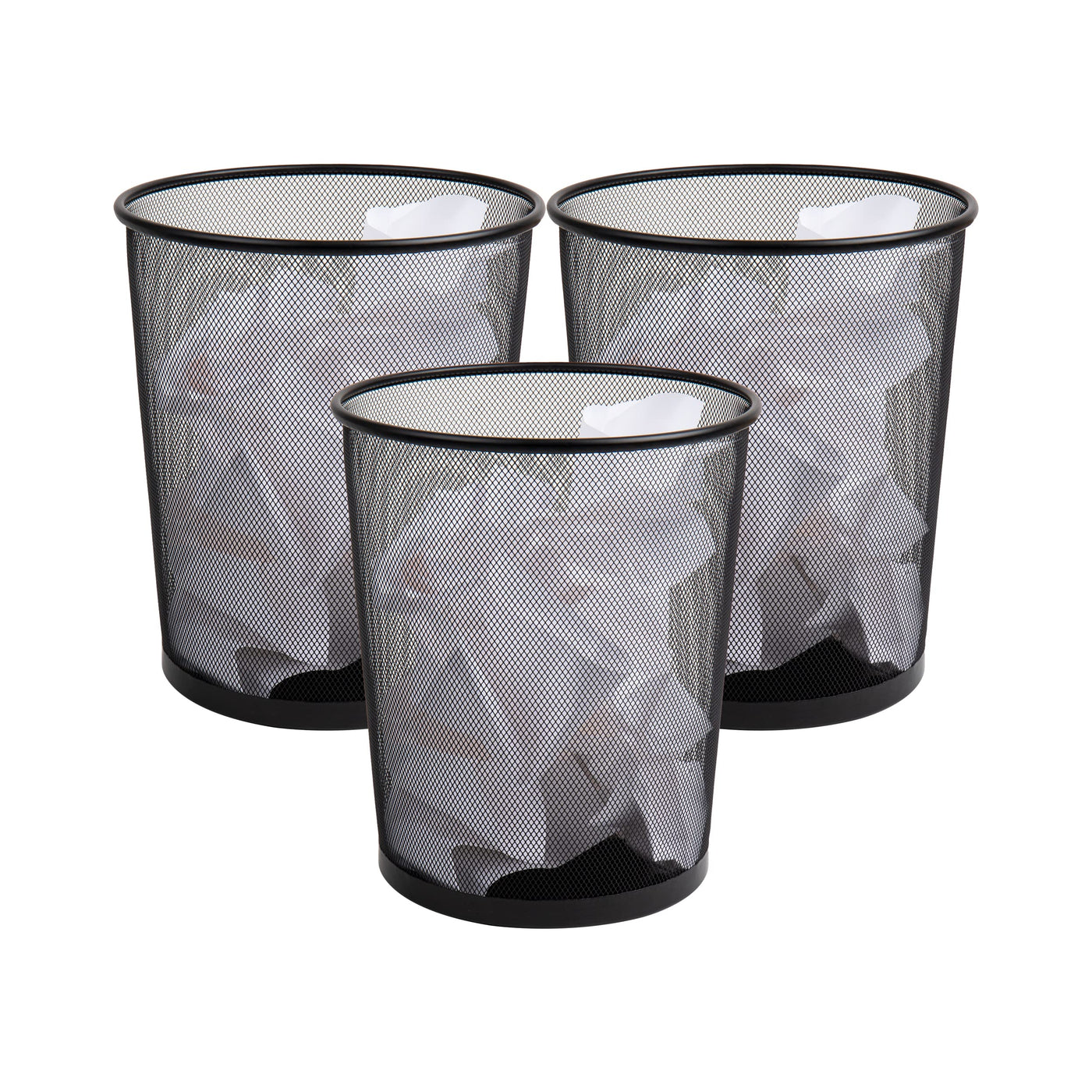 Mind Reader Mesh Trash Can, Set Of 3, Waste Paper Basket, Round, Office, Metal Mesh, 11.5'' L X 11.5'' W X 13.75'' H, Black