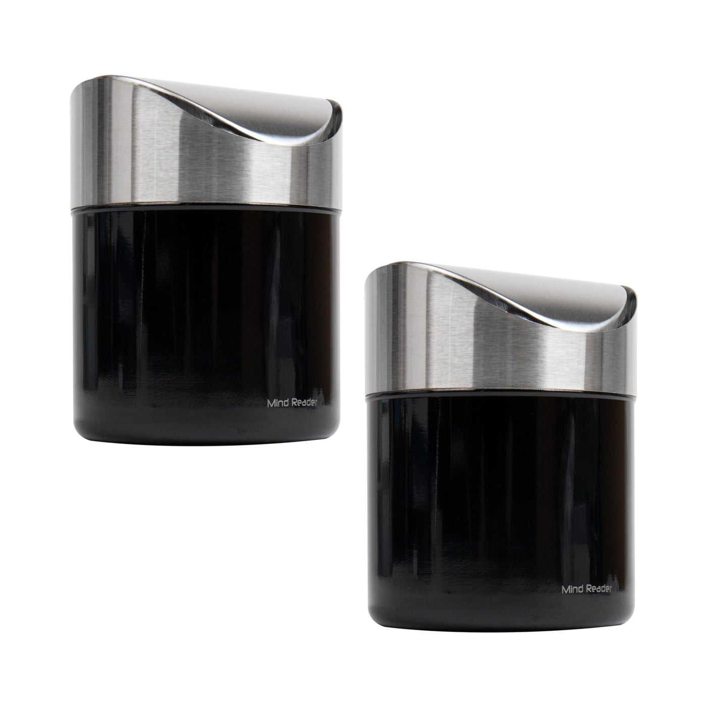 Mind Reader Mini Countertop Trash Can, Set Of 2, 1.5L(0.40 Gal) Waste Paper Basket, Office, L X 4.75'' W X 6.25'' H, Black