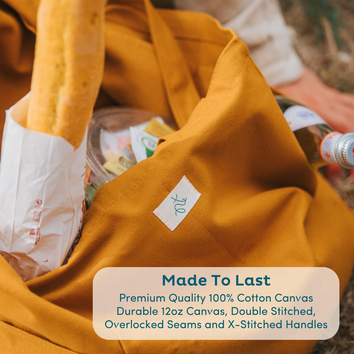 Nook Theory Reusable Grocery Bags - 100% Cotton 12Oz Canvas Grocery Bags With Handles, Large Reusable Shopping Kitchen, Heavy Du