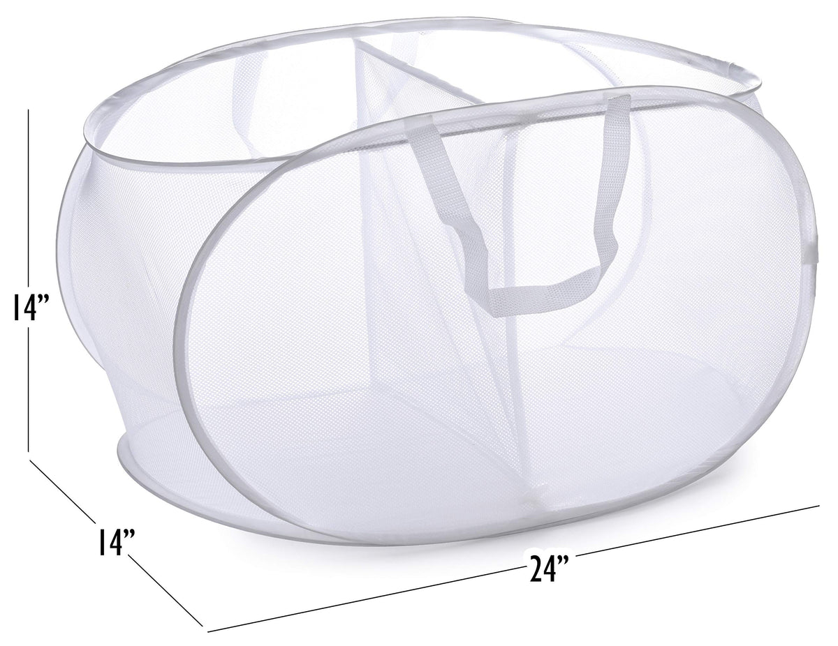Popup Laundry Basket, Two Compartments - Durable Mesh Material, Folds For Storage, Easy Carry Handles. Folding Pop-Up Laundry Ba