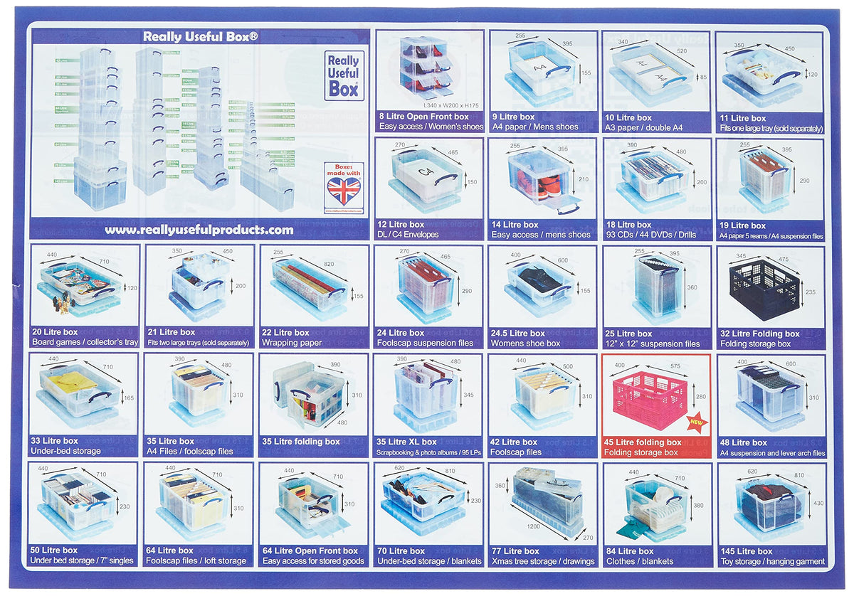 • Q: Is the storage box transparent? A: Yes, the Really Useful Box features a transparent design, allowing you to easily see the contents without needing to open the box.