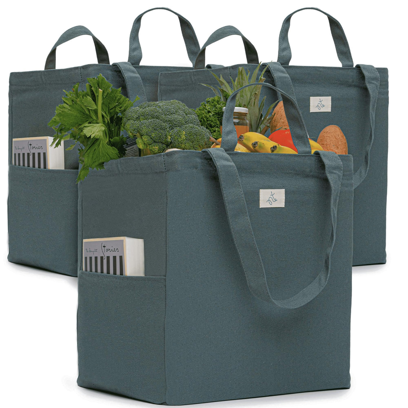 Reusable Grocery Bags - 100% Cotton 12Oz Canvas Grocery Bags With Handles, Large Kitchen Grocery Bags, Reusable Shopping Bags Fo
