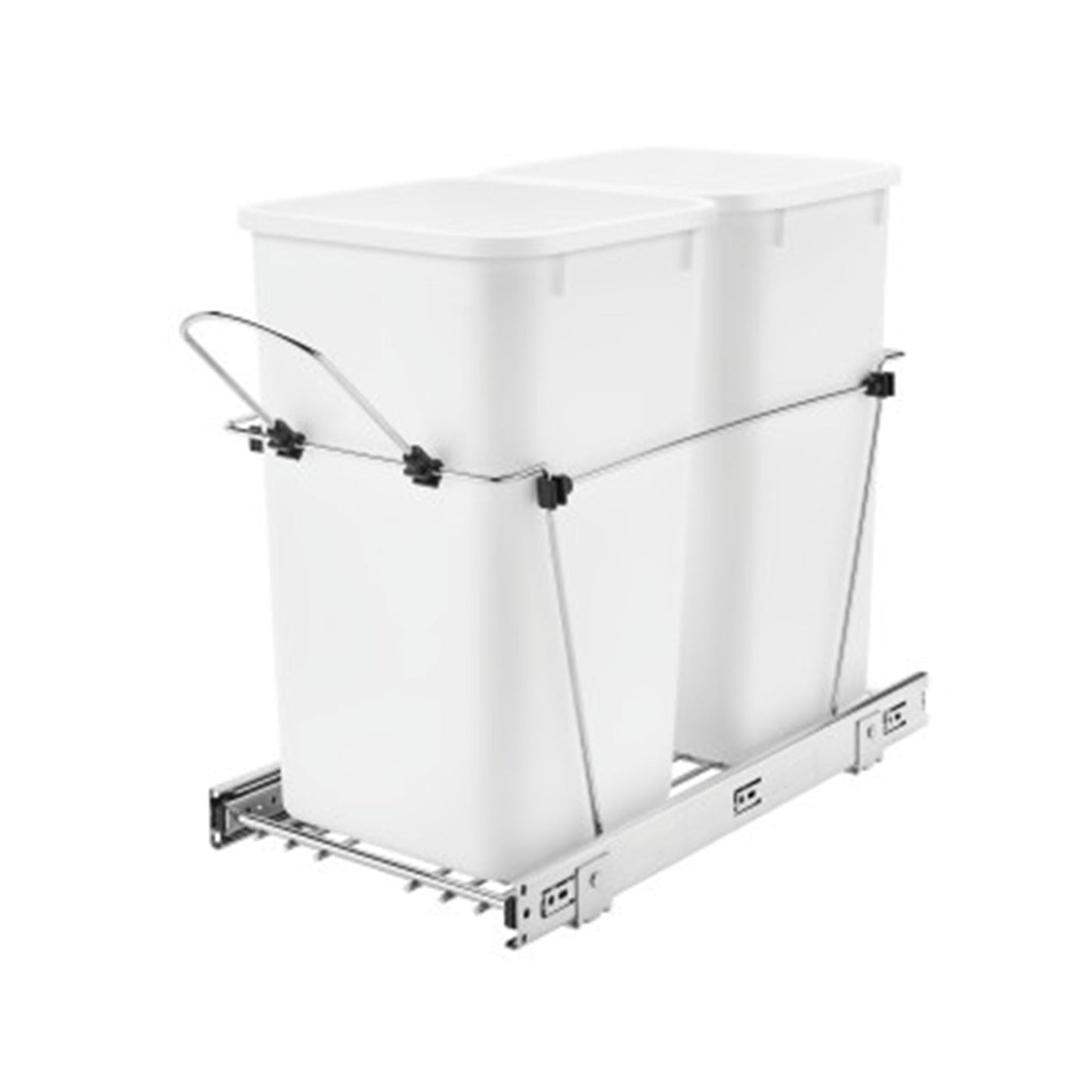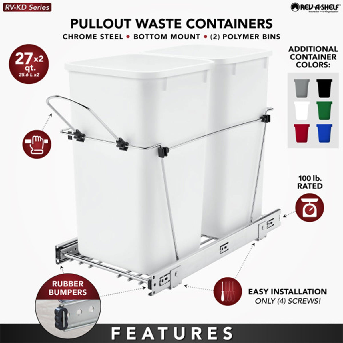 Rev-A-Shelf Pullout Trash Can For Under Kitchen Cabinets 27 Qt 12 Gallon Garbage Waste Recycling Bin With Full Extension Slides,