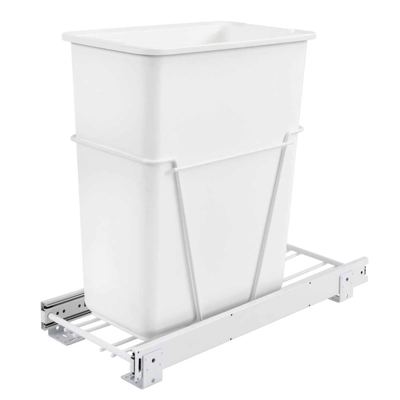 Rev-A-Shelf Single Pull-Out Cabinet Trash Can For Bottom Mount Kitchen 30 Qt Wire Construction With Full-Extension Slides, White