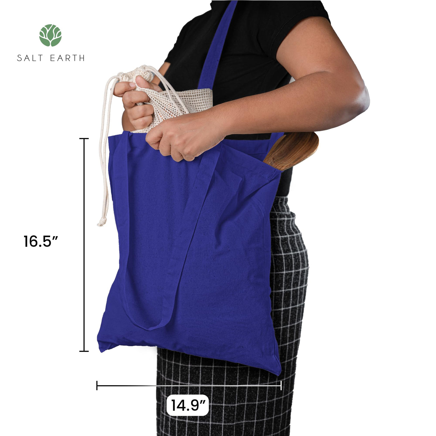 Salt Earth Pack Of 5, 100% Cotton Reusable Bulk Grocery Tote Bag, Reusable Shopping Bags, Suitable For Diy, Beach Tote Bag, Prom