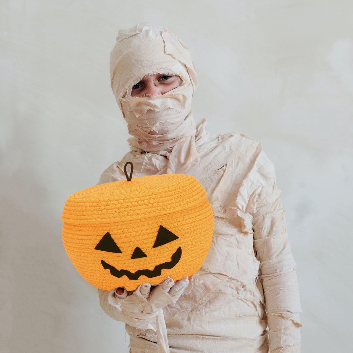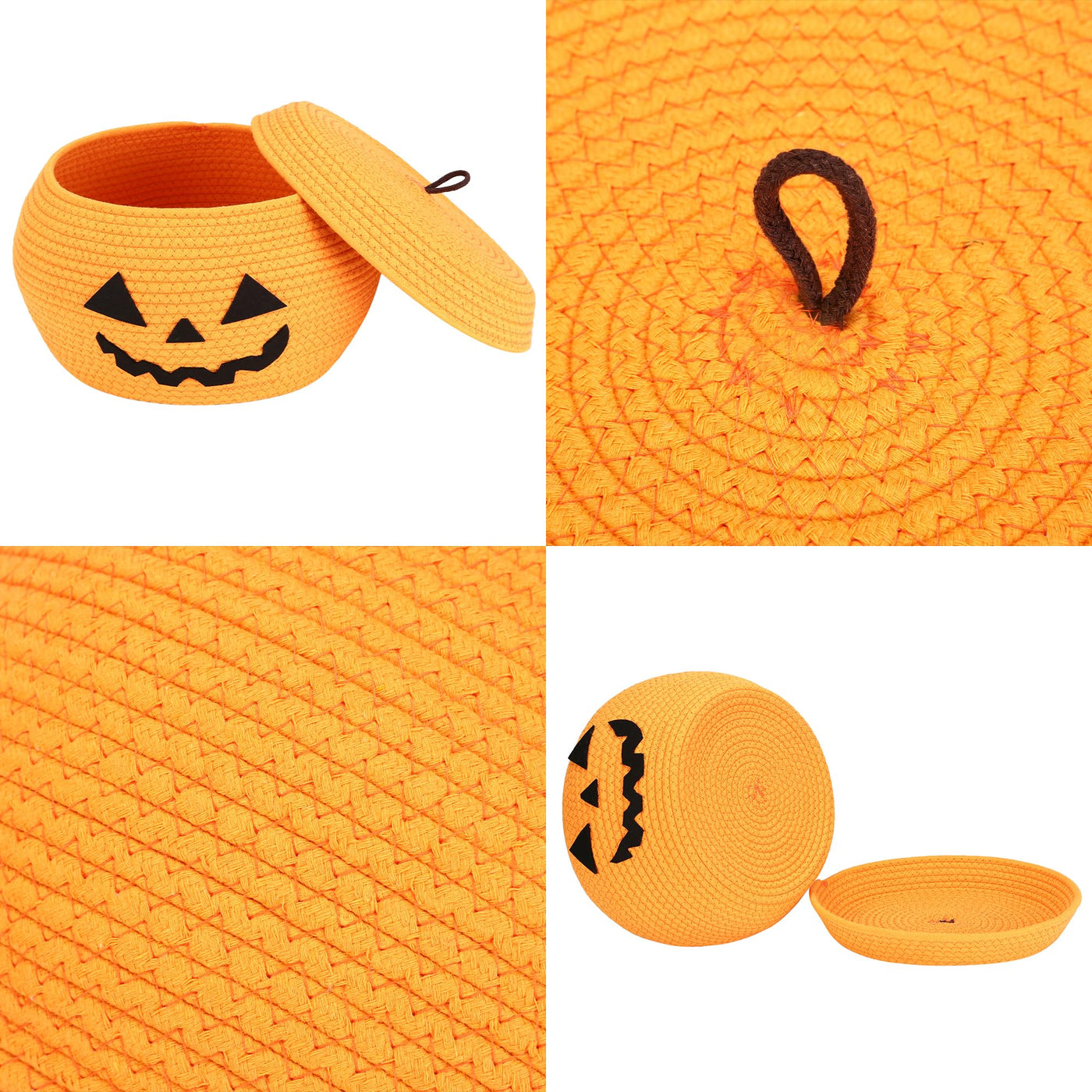Sea Team Round Cotton Rope Storage Basket with Lid, Halloween Pumpkin Woven Storage Bin, Pot, Caddy, Organizer, Container for Sn