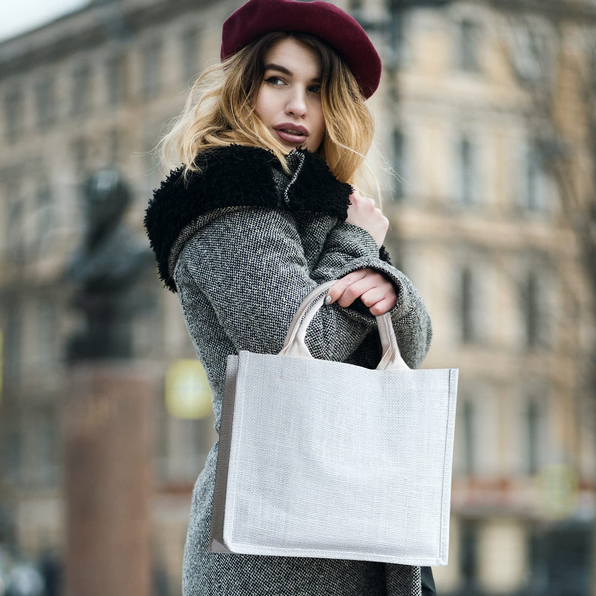 Segarty Tote Bags 3 Pack Small White Burlap Jute Reusable Canvas Gift Favors Bag with Handles Blank Totes Bulk for Bridesmaid Wedding Women Market Grocery Shopping Bachelorette Party Beach Trip