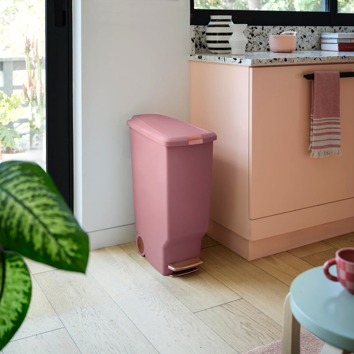 simplehuman 40 Liter / 10.6 Gallon Hybrid Slim Kitchen Step Trash Can with Secure Slide Lock, Blush Plastic
