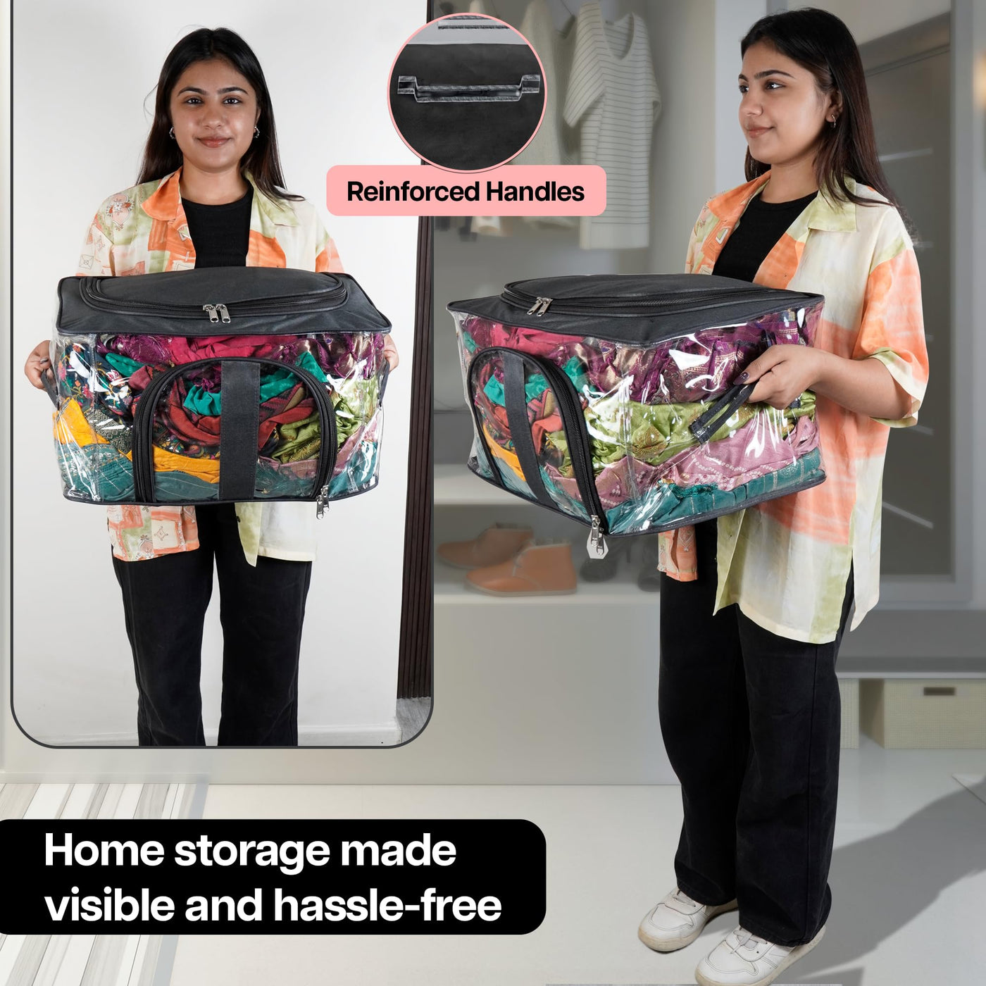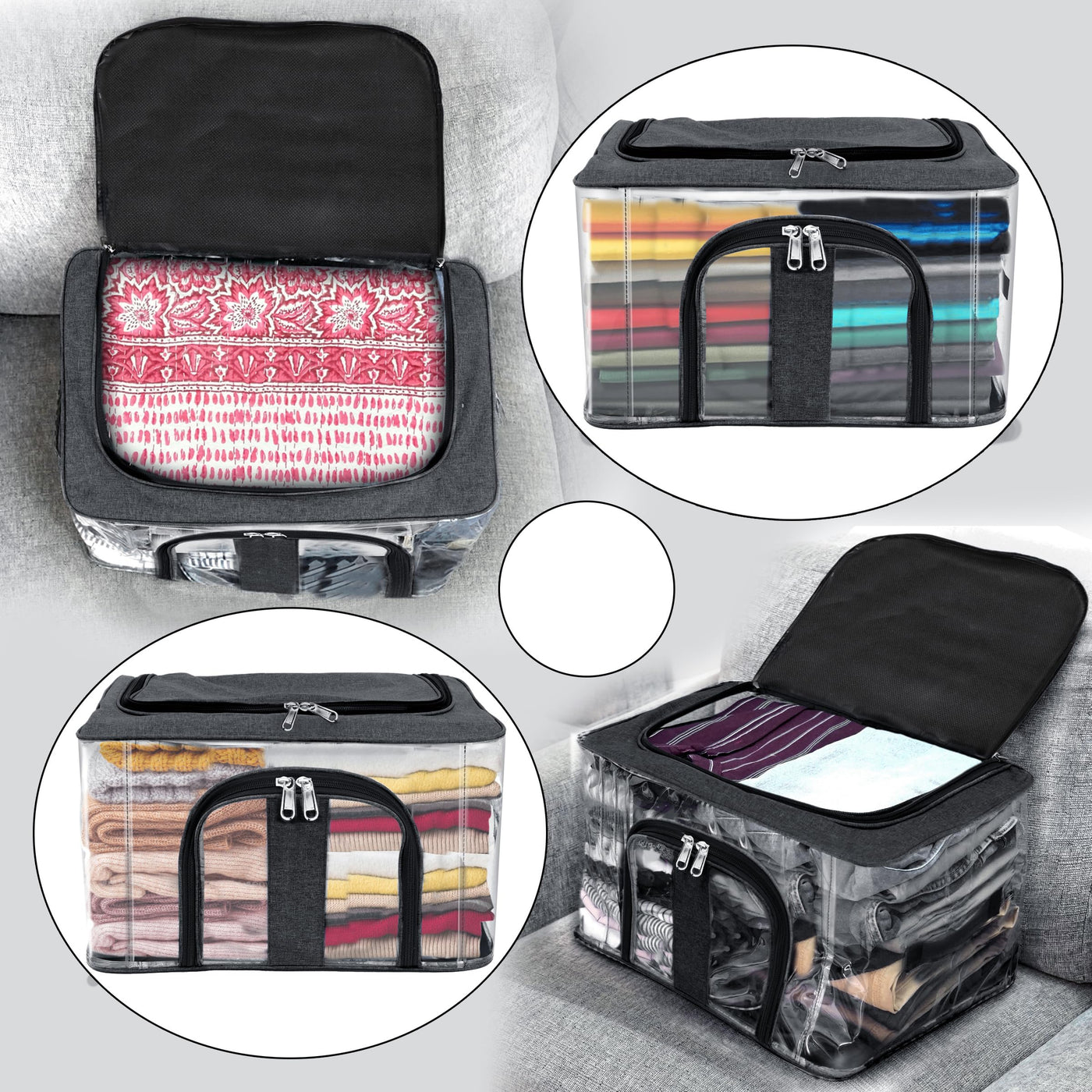 Storite 5 Pack Nylon 33 L Pvc Transparent Moisture Proof Storage Box For Clothes Closet Wardrobe Organizer Bag For Clothes Saree