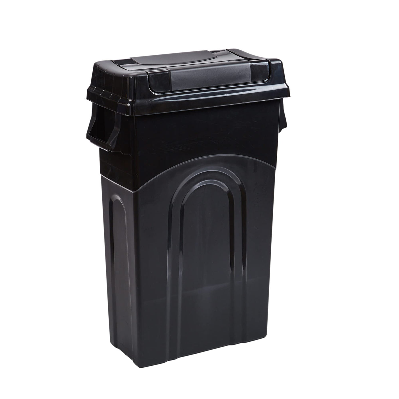 United Solutions Highboy Waste Container With Swing Lid, 23 Gallon, Space Saving Slim Profile And Easy Bag Removal, Handles For
