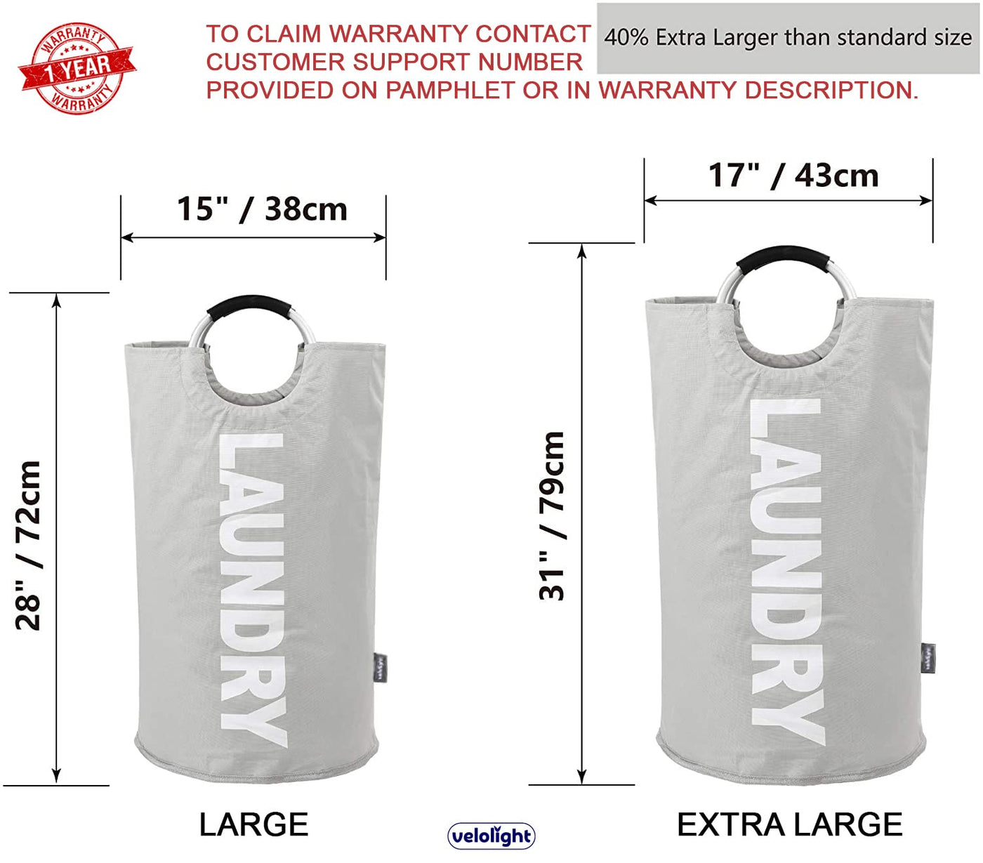 Velolight Laundry Basket with Handles (Large 82 Ltr ) Big Foldable Laundry Bag Waterproof Bin Hamper for Dirty Used Clothes for Washing (72Cms * 38Cms) (Light Grey, Large)