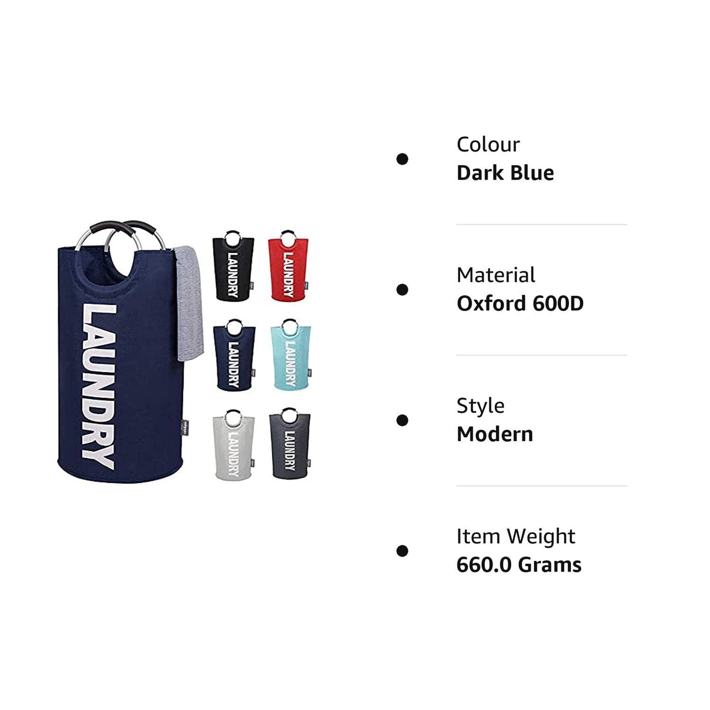 Velolight Plastic Laundry Basket With Handles (X-Large 115 Litre ) Big Foldable Laundry Bag Waterproof Bin Hamper For Dirty Used Clothes For Washing (79Cms * 43Cms) (Dark Blue, X-Large)