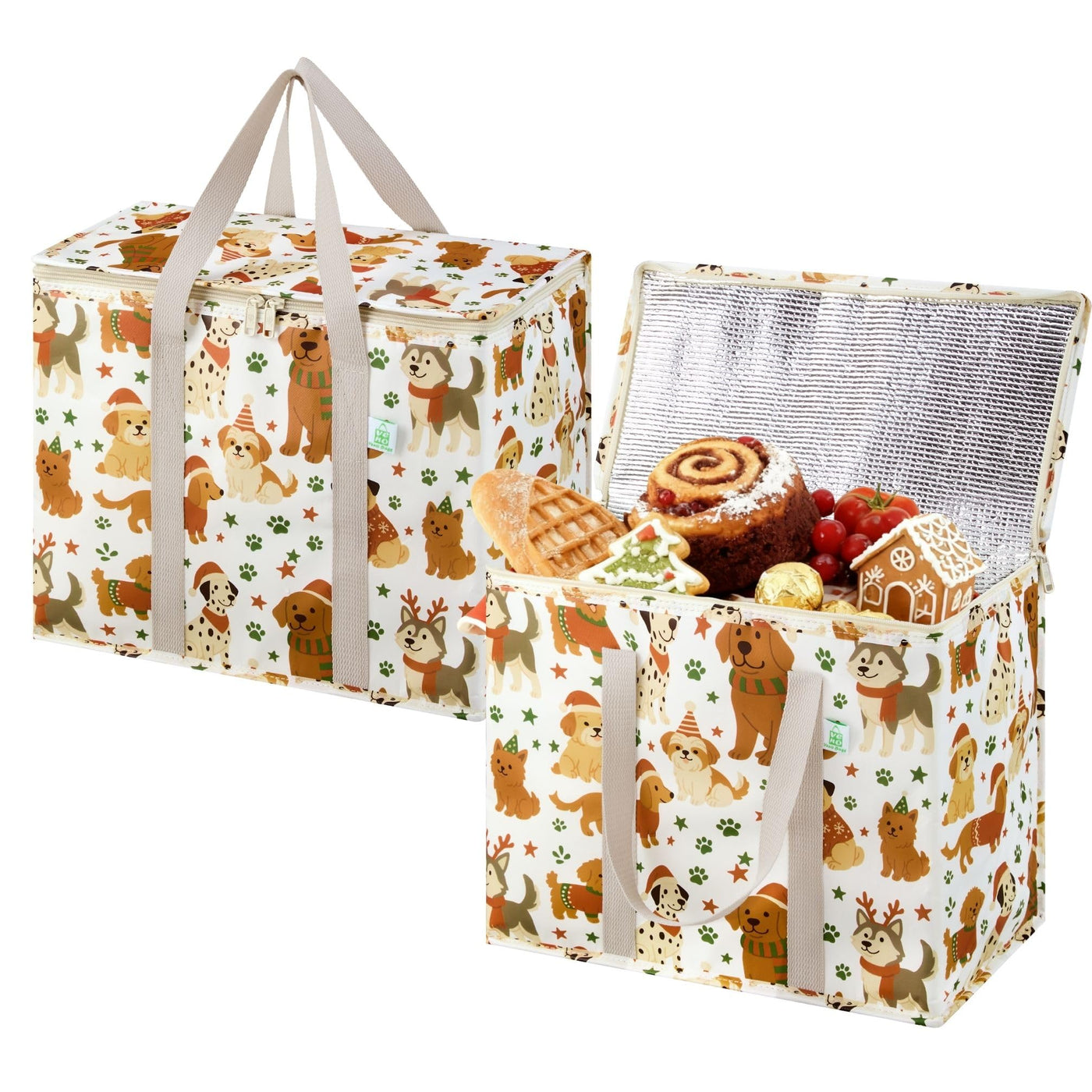 VENO 2 Pack Christmas Cooler Bag Insulated Reusable Grocery Shopping Bag, Food Delivery, Heavy Duty, Large Size, Durable Handles