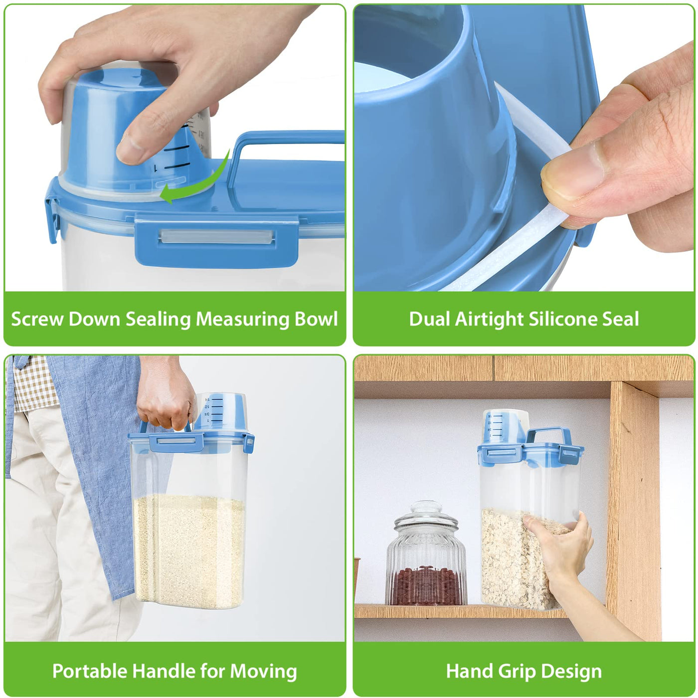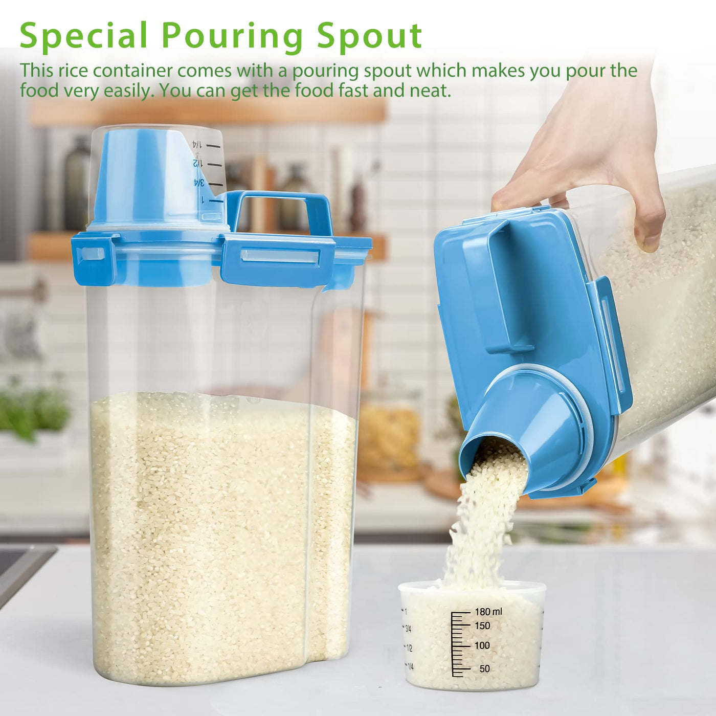 Viretec Rice Airtight Storage Container, 3 To 5Lbs Cereal Dry Food Flour Bin, Pet Dog Cat Food Dispenser With Measuring Cup, Bpa
