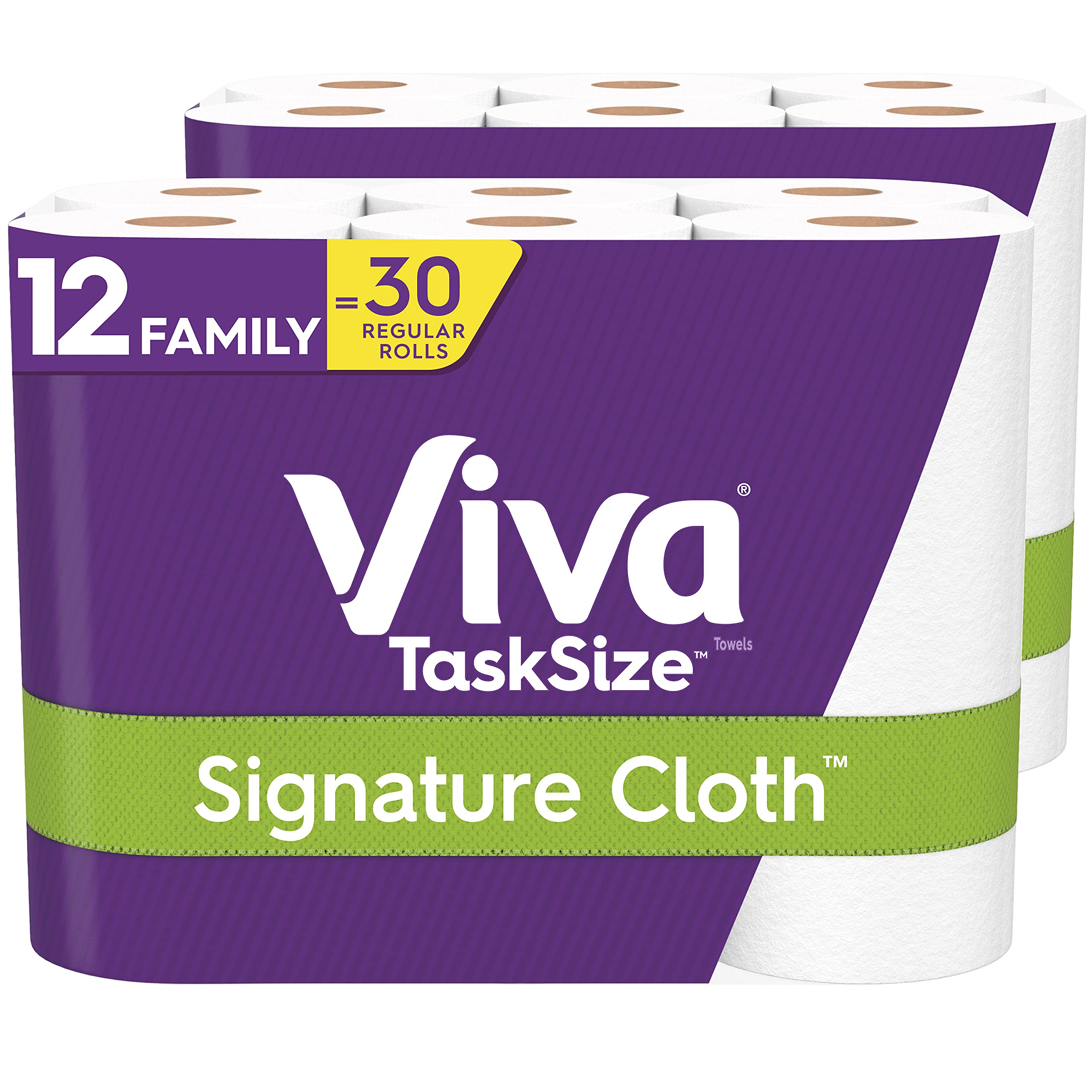 Viva Signature Cloth Paper Towels, Task Size - 12 Family Rolls (2 Packs Of 6 Rolls) = 30 Regular Rolls (143 Sheets Per Roll), 28