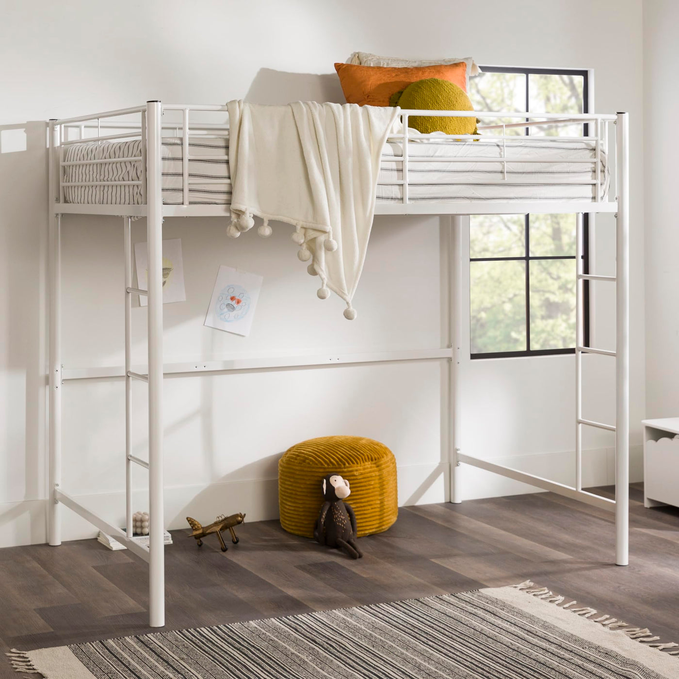 • Q: What materials is the loft bed made from? A: The loft bed is made from a sturdy metal frame, ensuring durability and stability.