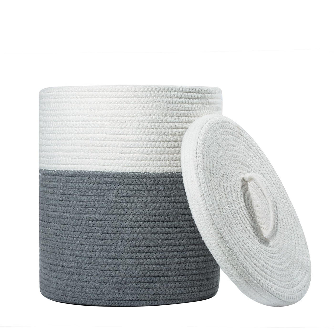 Yimi'S Dream Storage Basket With Lid, Small Lidded Cotton Rope Storage Bins For Organizing, Cute Woven Round Covered Laundry Bas