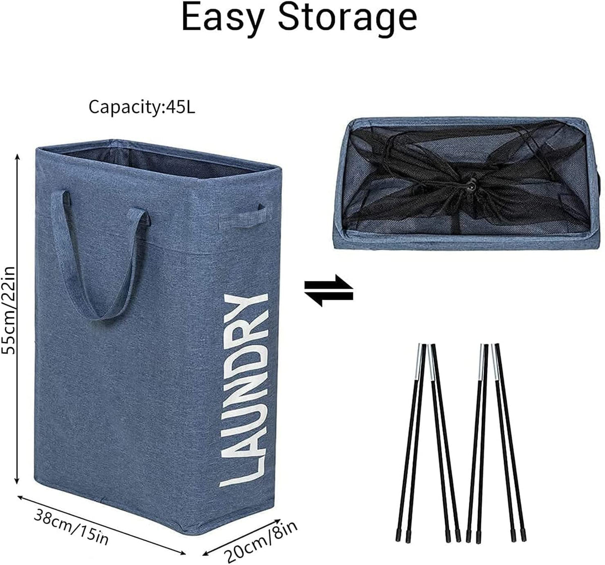 Zero Jet Lag Slim Laundry Hamper Handles Collapsible Laundry Basket Thin Dirty Clothes Basket Narrow Laundry Bag Foldable Dirty