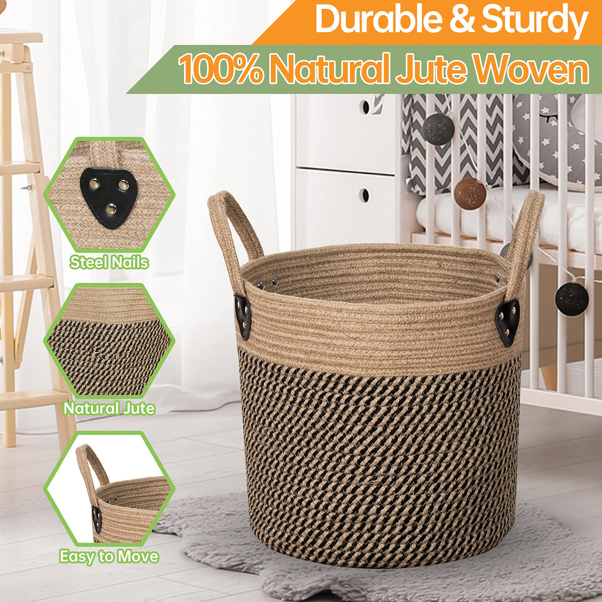 Zoes Homeware 14''X12'' Natural Jute Rope Woven Storage Basket With Handles For Plant, Blankets,Toys,Clothes,Shoes - Living Room