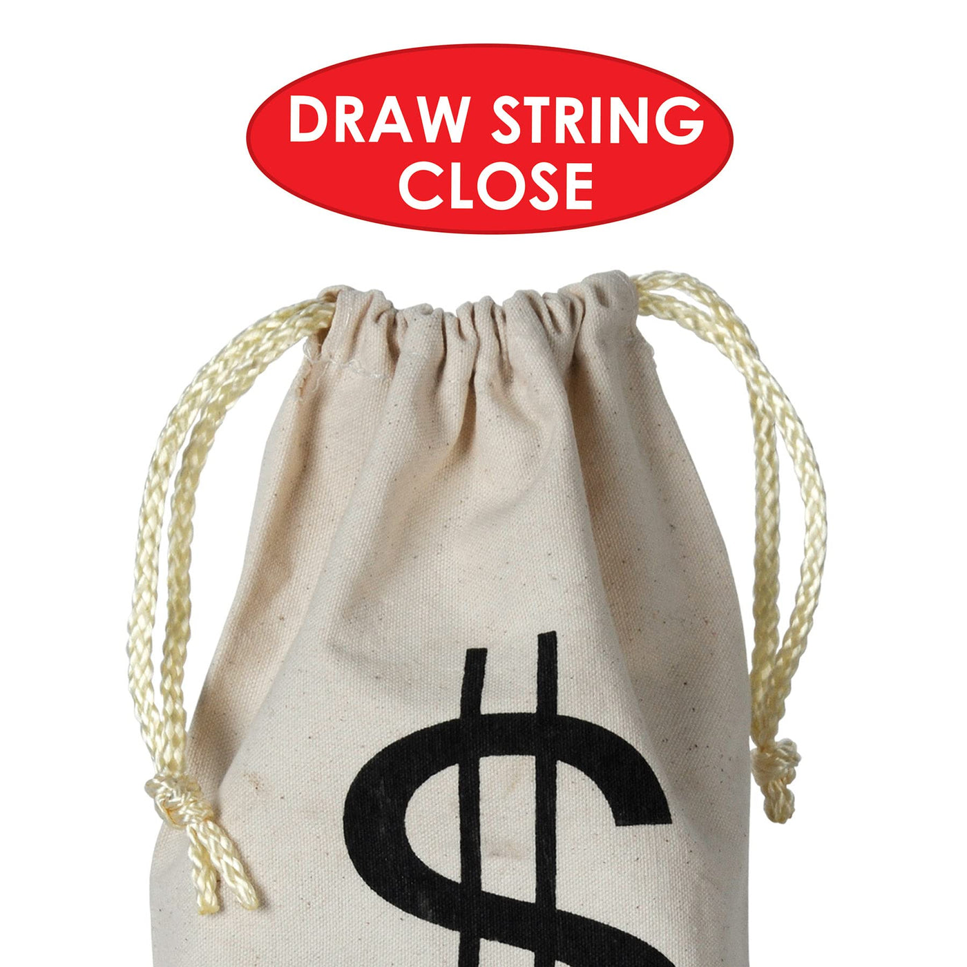 • Q: Does the money bag come with any accessories? A: The money bag includes a drawstring to secure the contents and match your party theme.
