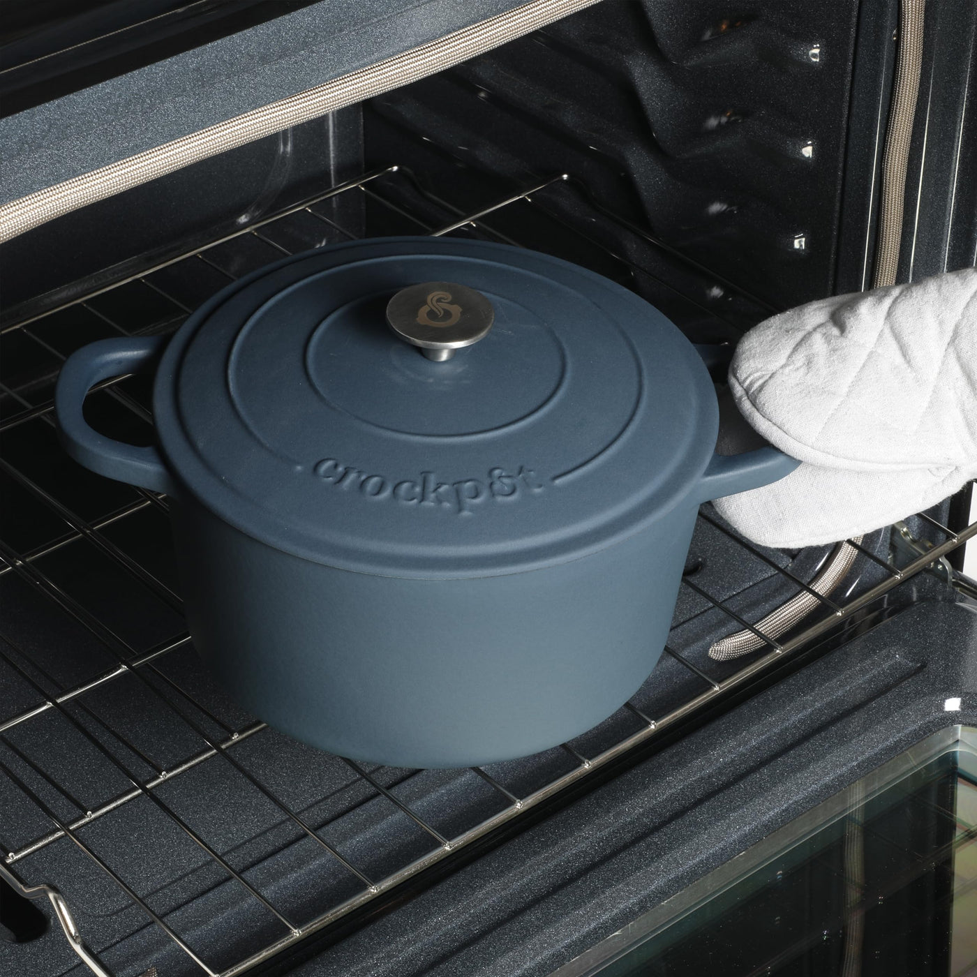 Crock Pot Artisan 5-Quart Round European Enameled Cast Iron Dutch Oven Pot W/Lid - Matte Navy Blue
