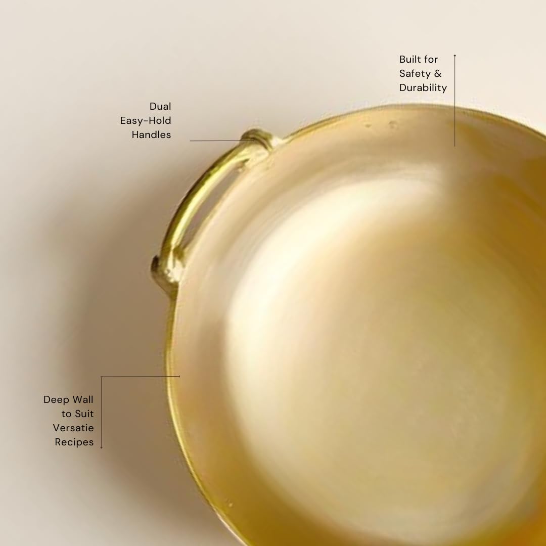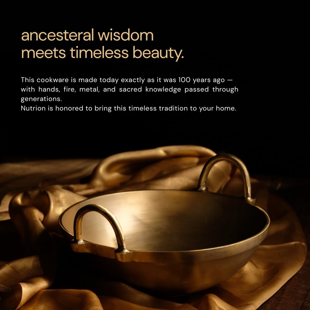 NUTRION Pure Bronze Kadai 4.5 Litre Traditional Indian Cooking Pot with Health-Boosting Properties/Free of Toxins-30 cm