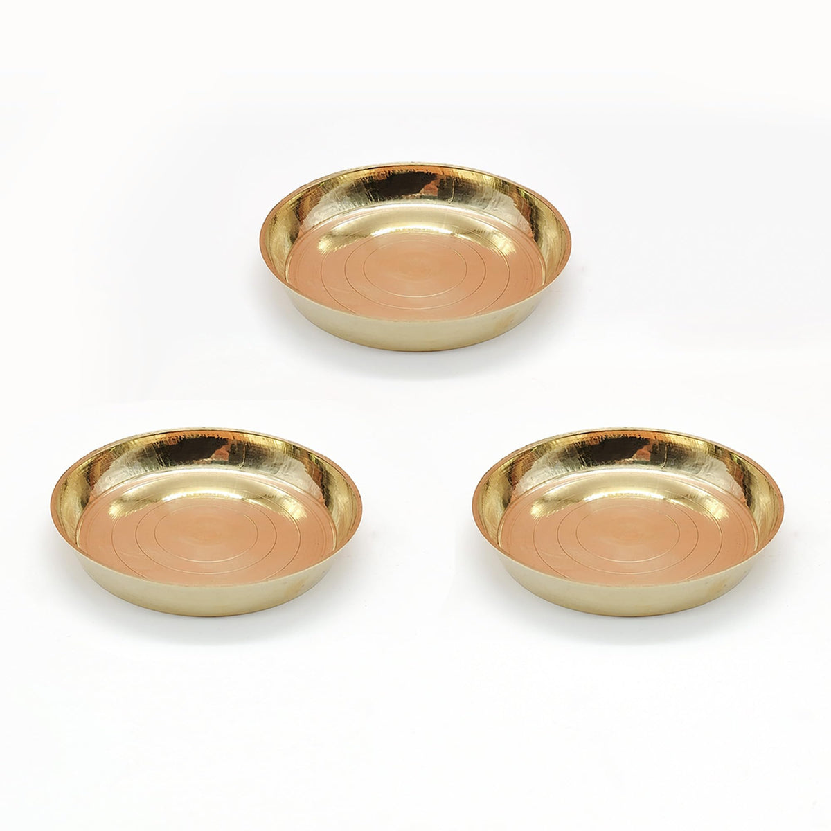 DOKCHAN Brass Plain Design Heavy Plate for Store kumkum, haldi, akshat, Prashad/Heavy Small thali for Pooja Purpose Round Shape