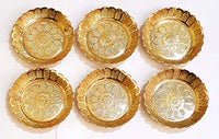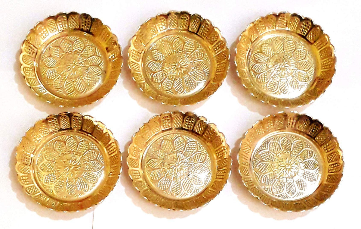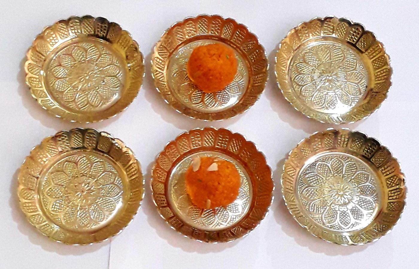 S.S TRADERS Small Size Pure Yellow Brass Plate for Puja/Diwali/Bhog Thali with Beautiful Flower Embossed Design (Size 3.6 inch)