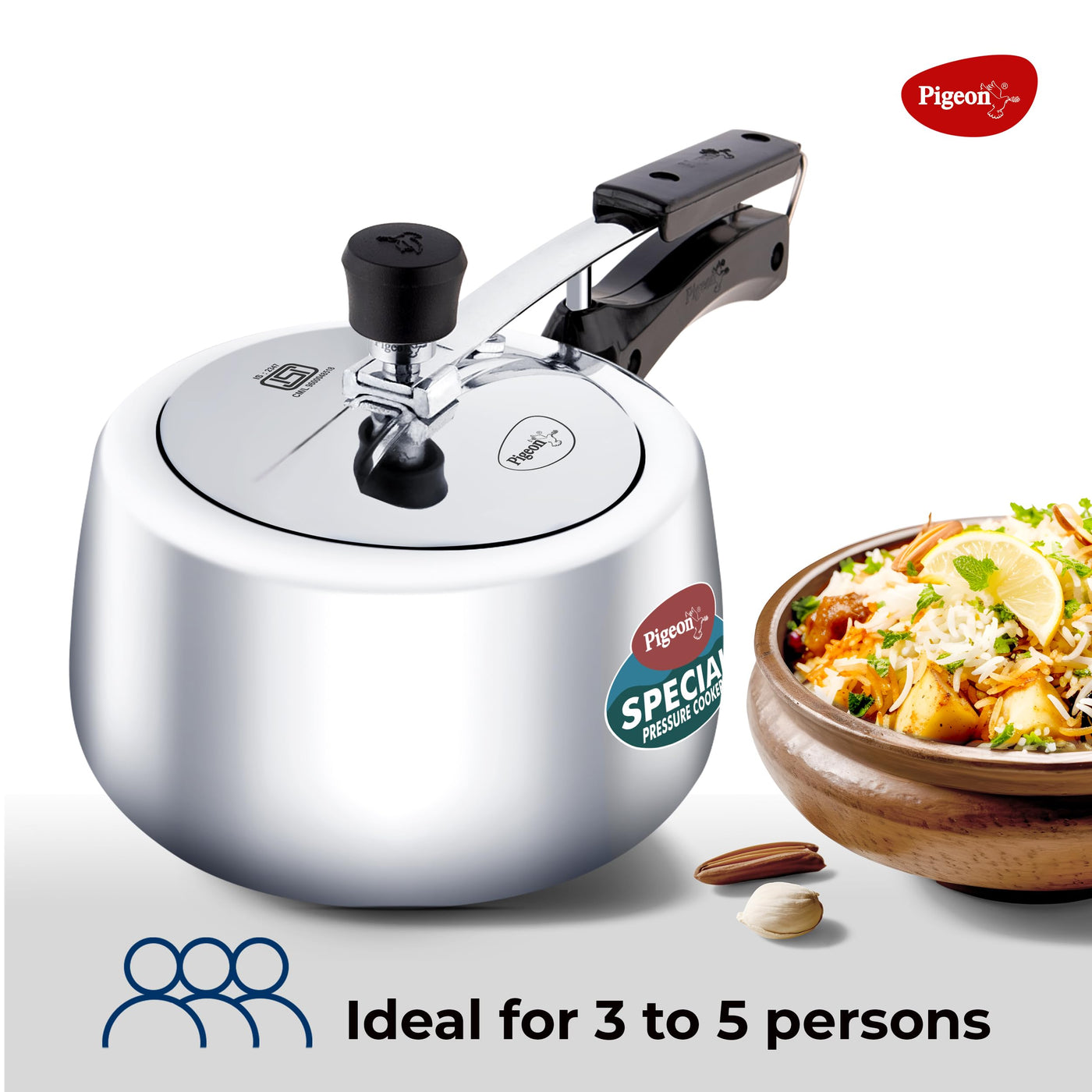 DescriptionEquipped with an ergonomically designed handle, this Pigeon pressure cooker is made from high grade virgin aluminium that gives it a durable body. While the precision weight value helps save time and energy, the metallic safety plug ensures a safe cooking experience.