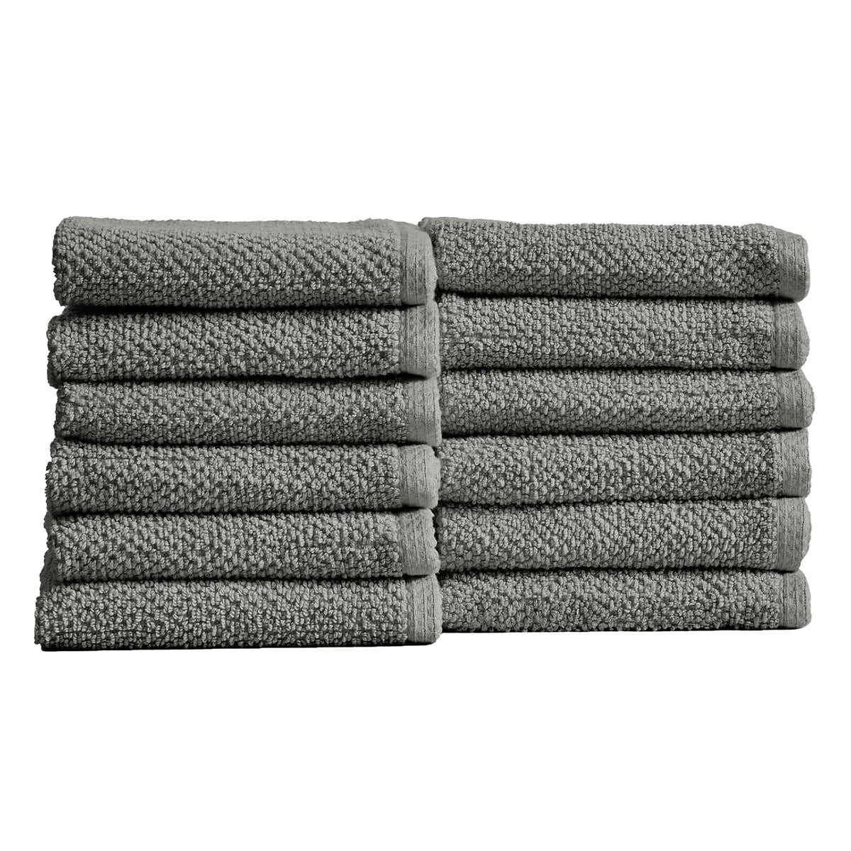 12-Pack 100% Cotton, Quick-Dry Textured Washcloths. Ultra-Absorbent, Popcorn Weave. Acacia Collection. (Wash 12Pk, Dark Grey)