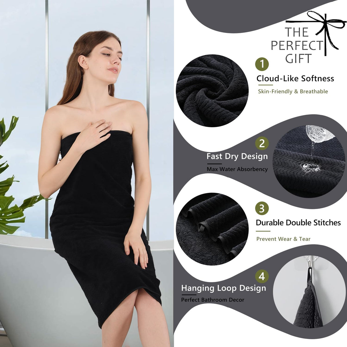 - Q: What color options are available for these towels? A: This specific set is available in black, but it's advisable to check the product listing for any other color options that may be offered.