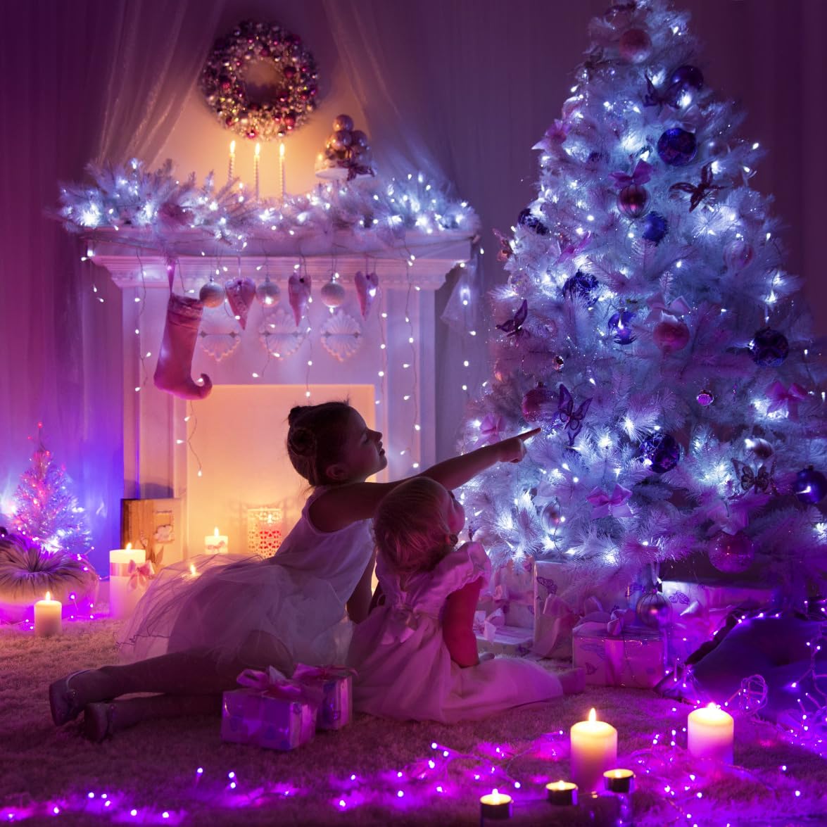 6ft White Christmas Tree, White Artificial Christmas Tree with 1005 Branch Tips and Decorations( silver Top Star, 2set 200 Tips battery boxes powered