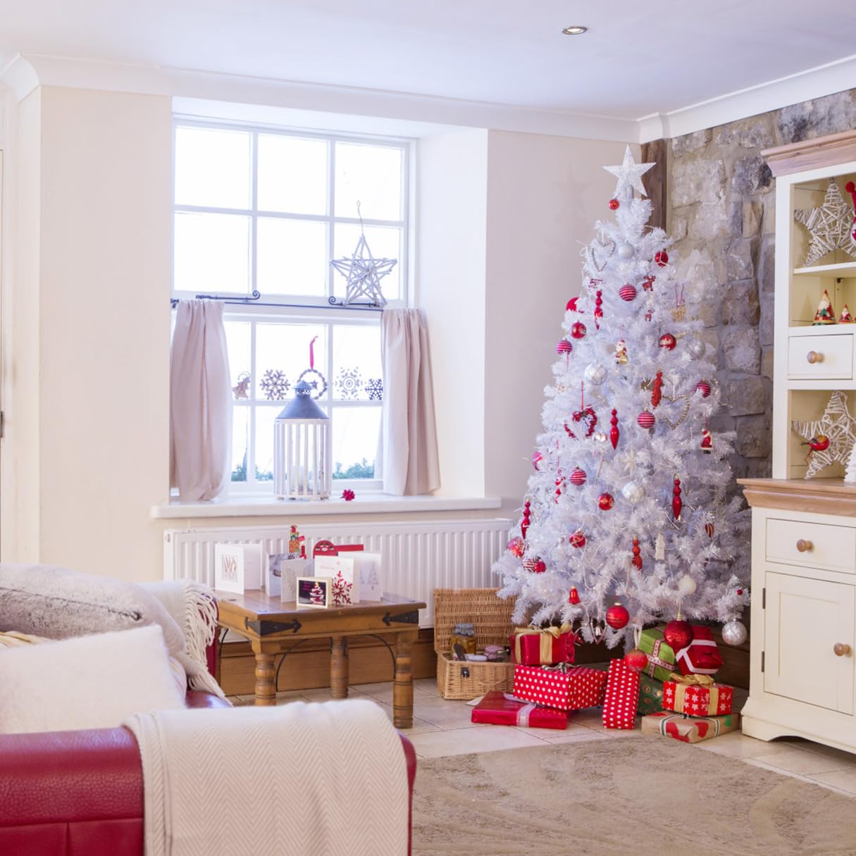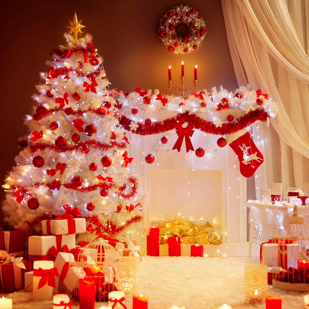 6ft White Christmas Tree, Xmas Tree Artificial Christmas White Trees with 1005 Branch Tips and Decorations(1pcs Top Star, 2set 2