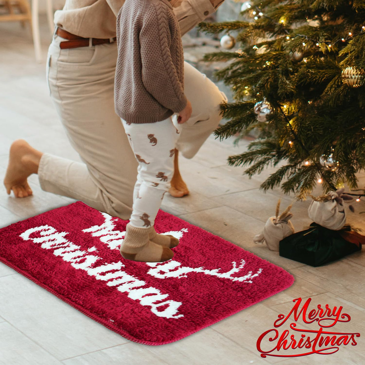 Ainahyva Merry Christmas Decorations Red Bathroom Rugs Cute Bath Mat Christmas Decor, Bath Mats For Bathroom, Non Slip Backing,