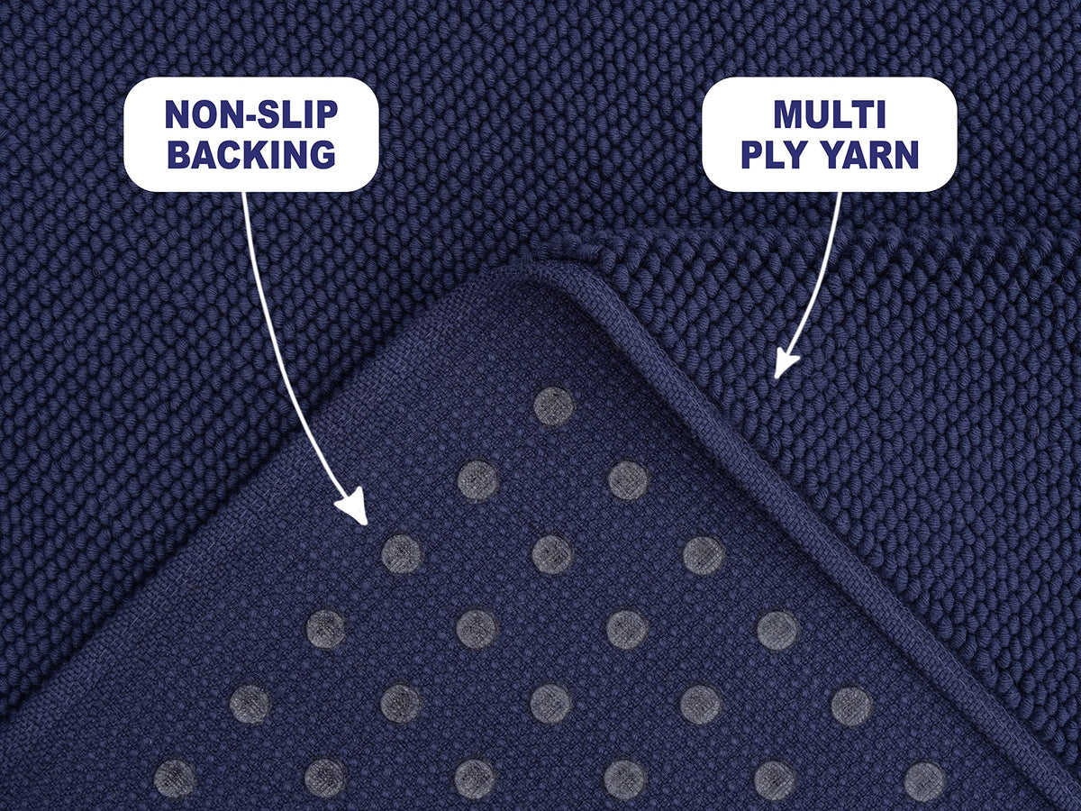American Soft Linen Bath Rug, 20 In 34 In 100% Cotton Bath Mats Rugs For Bathroom, Non Slip Washable Shaggy Form Area Rugs, Navy