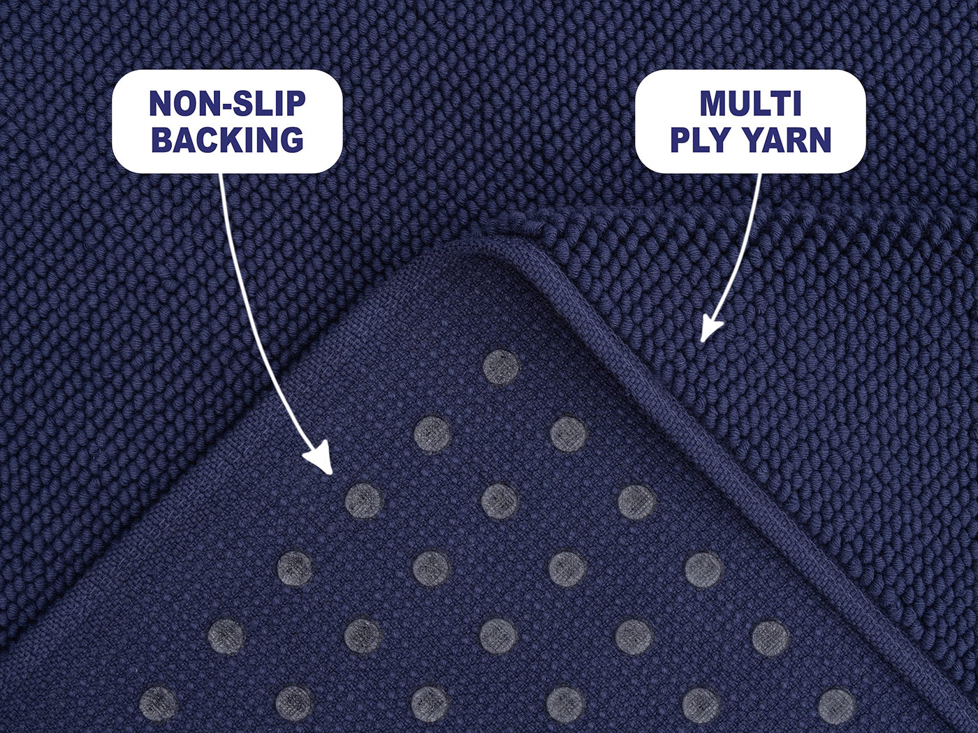 - Q: Are there any color variations for this bath rug? A: Yes, the bath rug is available in navy blue, but colors may vary slightly due to computer color management.