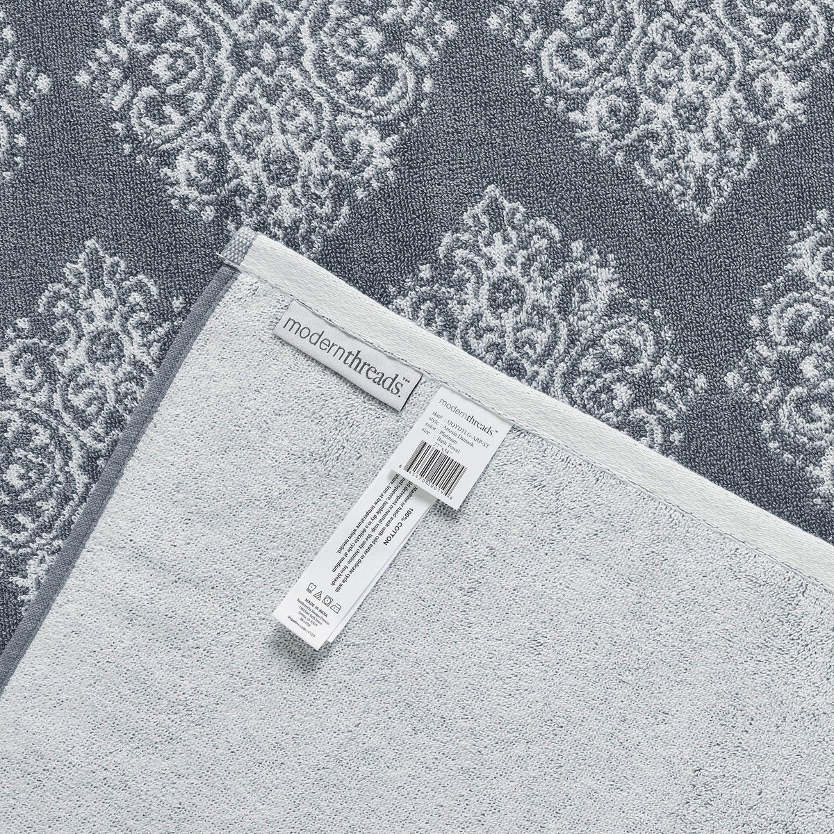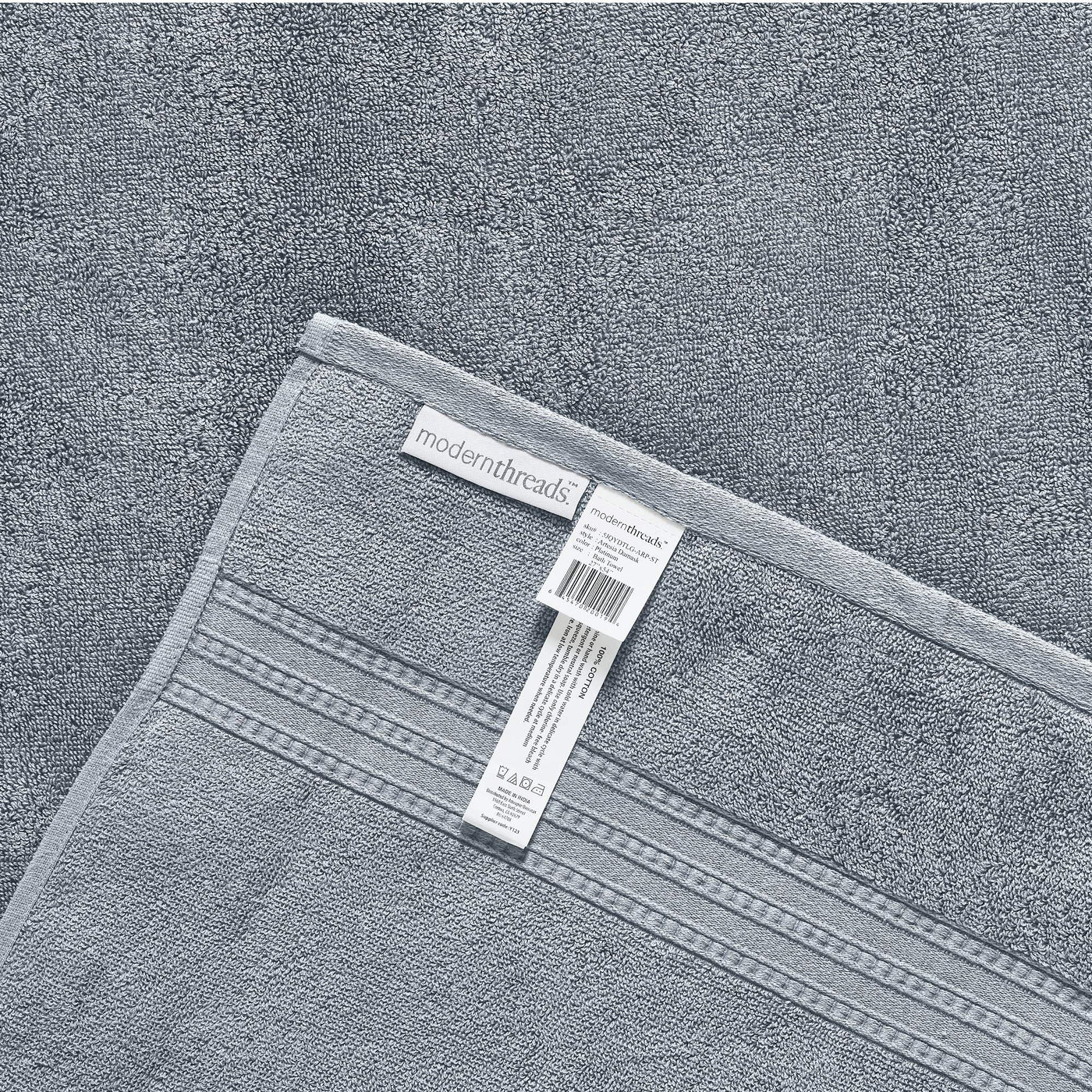 - Q: What colors are available for this towel set? A: The Modern Threads Artesia Damask Towel Set is available in a variety of colors to complement your bathroom decor.