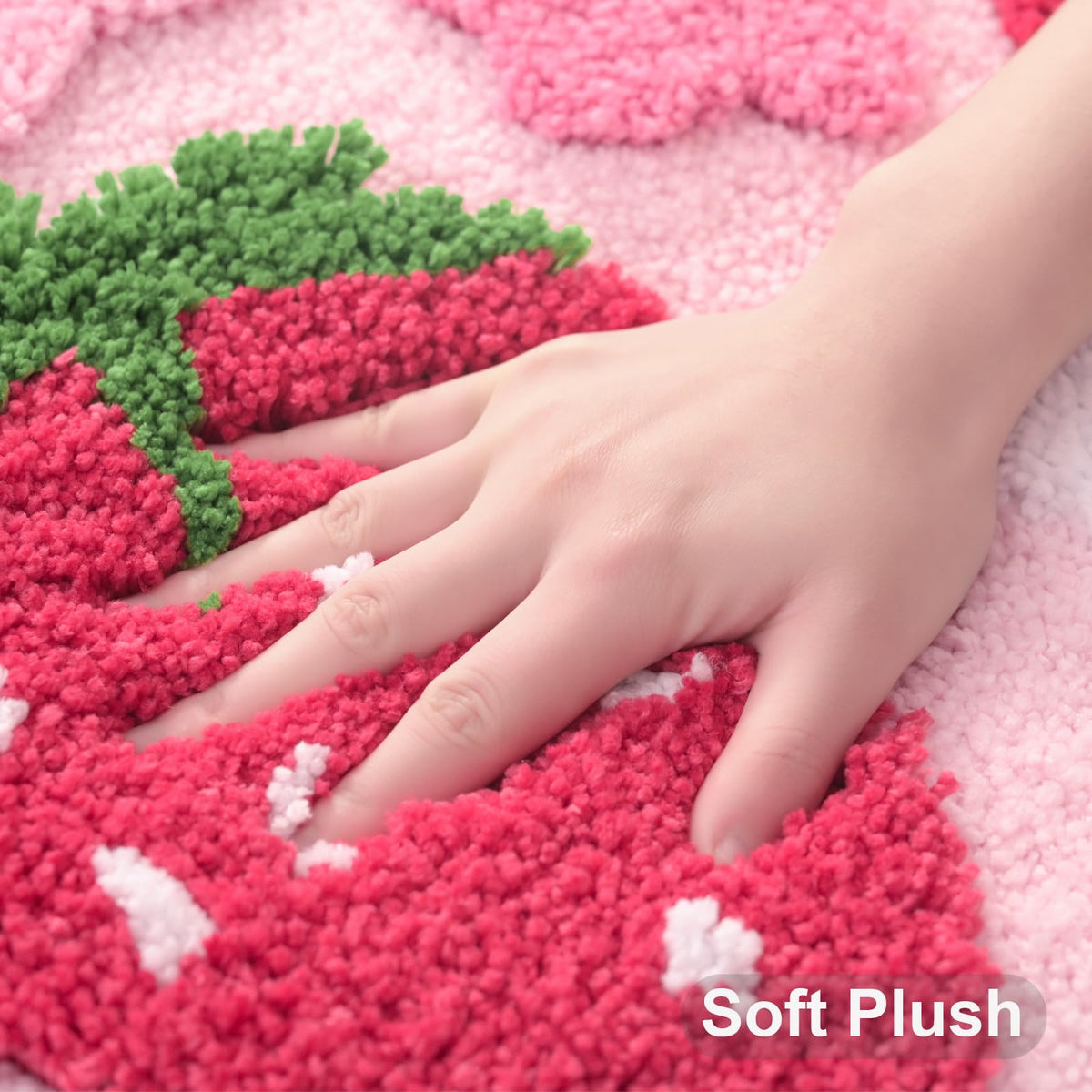 - Q: What is the design of the Anybar Pink Toilet Rug like? A: The rug features a cute strawberry and flower pattern with a 3D design and varying fiber lengths, adding charm to your bathroom decor.