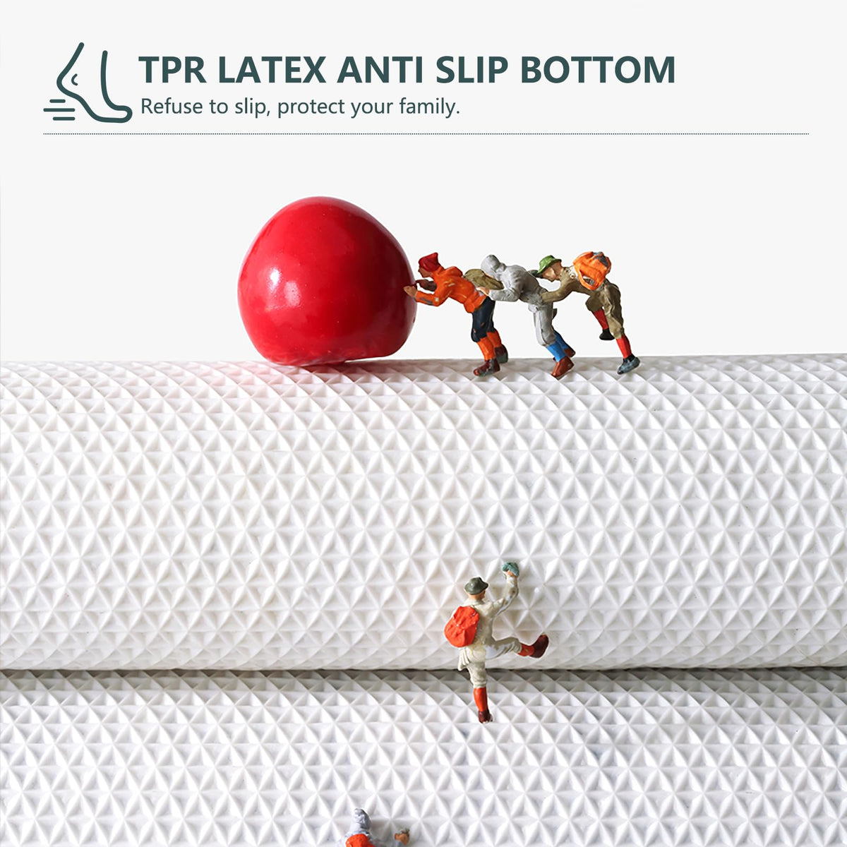 - Q: How does the non-slip feature work? A: The bath mat has a TPR backing that provides slip resistance, ensuring safety on smooth surfaces when used properly.