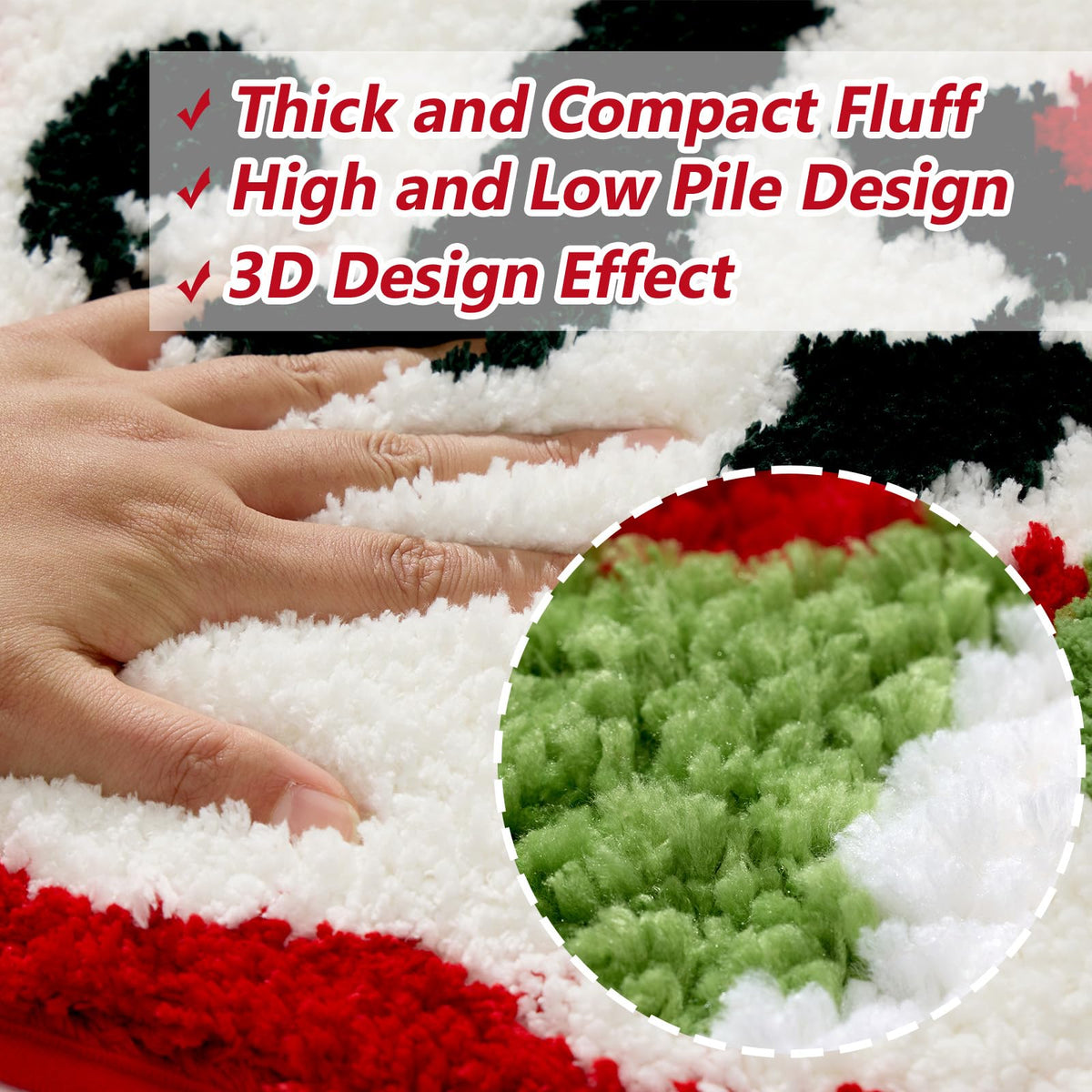 Baccessor Christmas Bath Rugs Mat For Bathroom, Cute Joy Plush Non Slip Water Absorbent Washable Red Green Bathroom Rugs Mats Fo