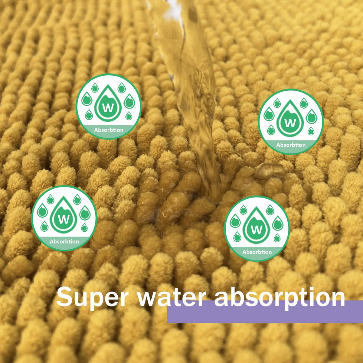 • Q: How absorbent are these bathroom rugs? A: These bathroom rugs have superior water absorbency due to their three-layer construction, which allows them to absorb water in seconds, approximately three times better than usual rugs.