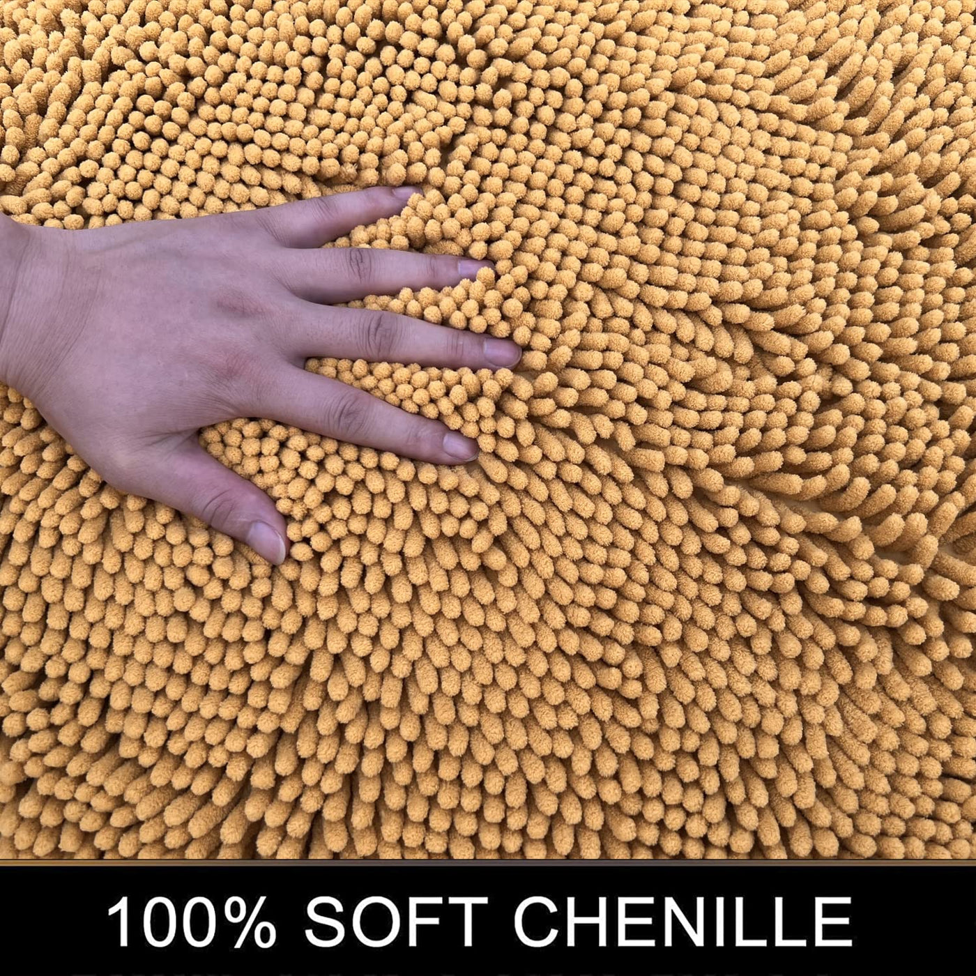 • Q: What material is used in the bathroom rugs? A: The bathroom rugs are made of chenille, which is soft, plush, and highly absorbent, providing comfort underfoot.
